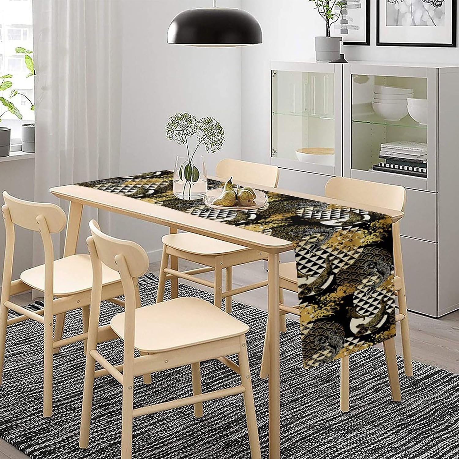 Japanese Table Runner Oriental Tradition Kio Fish Gold Art Printed Burlap Runner Home Kitchen Dining Table Living Room Decor Fabric 1 Panel W13xL108in