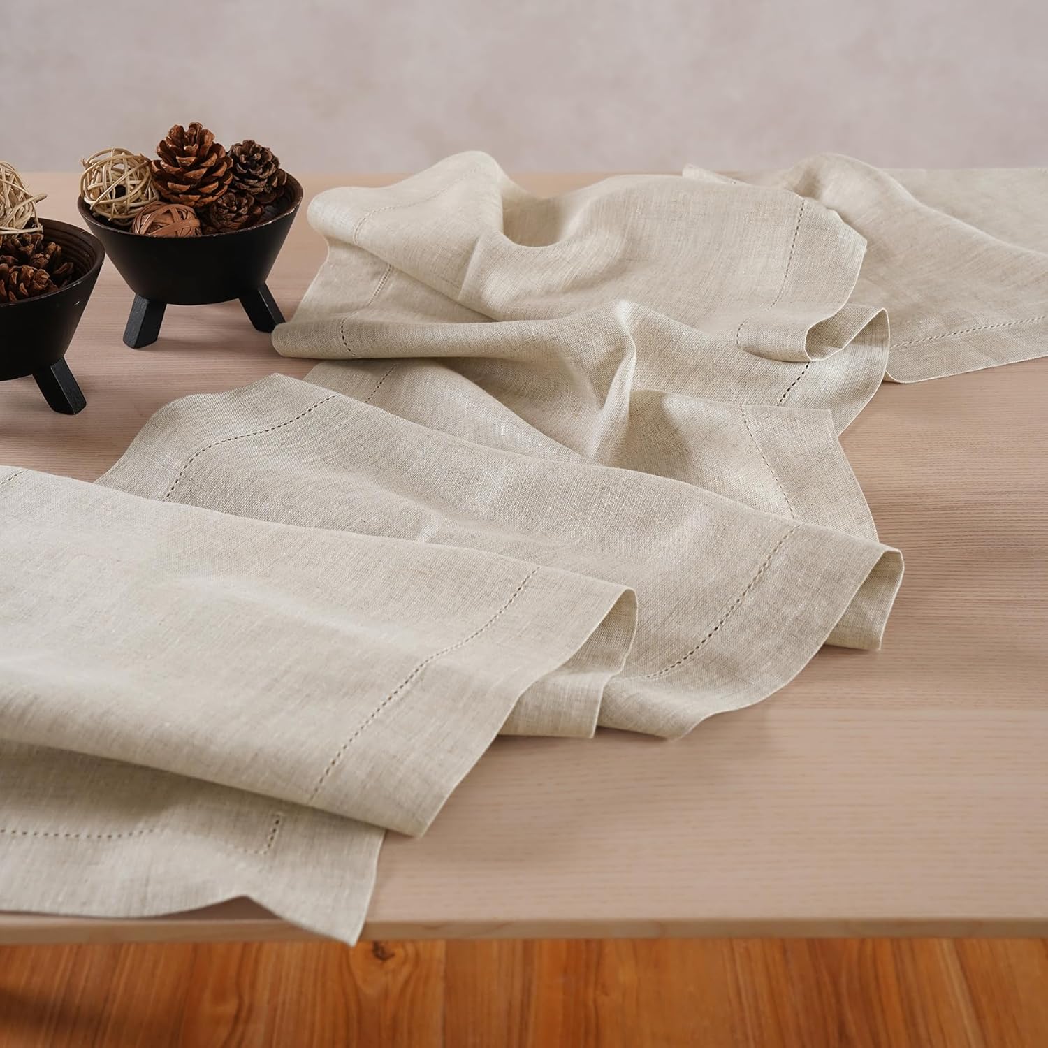 Linen Light Natural Table Runner 90 Inches - 100% Pure Linen Cloth Fabric Hemstitch Table Runner 14 x 90 Inch for Dining, Dresser, Thanksgiving, Fall Christmas - Lino