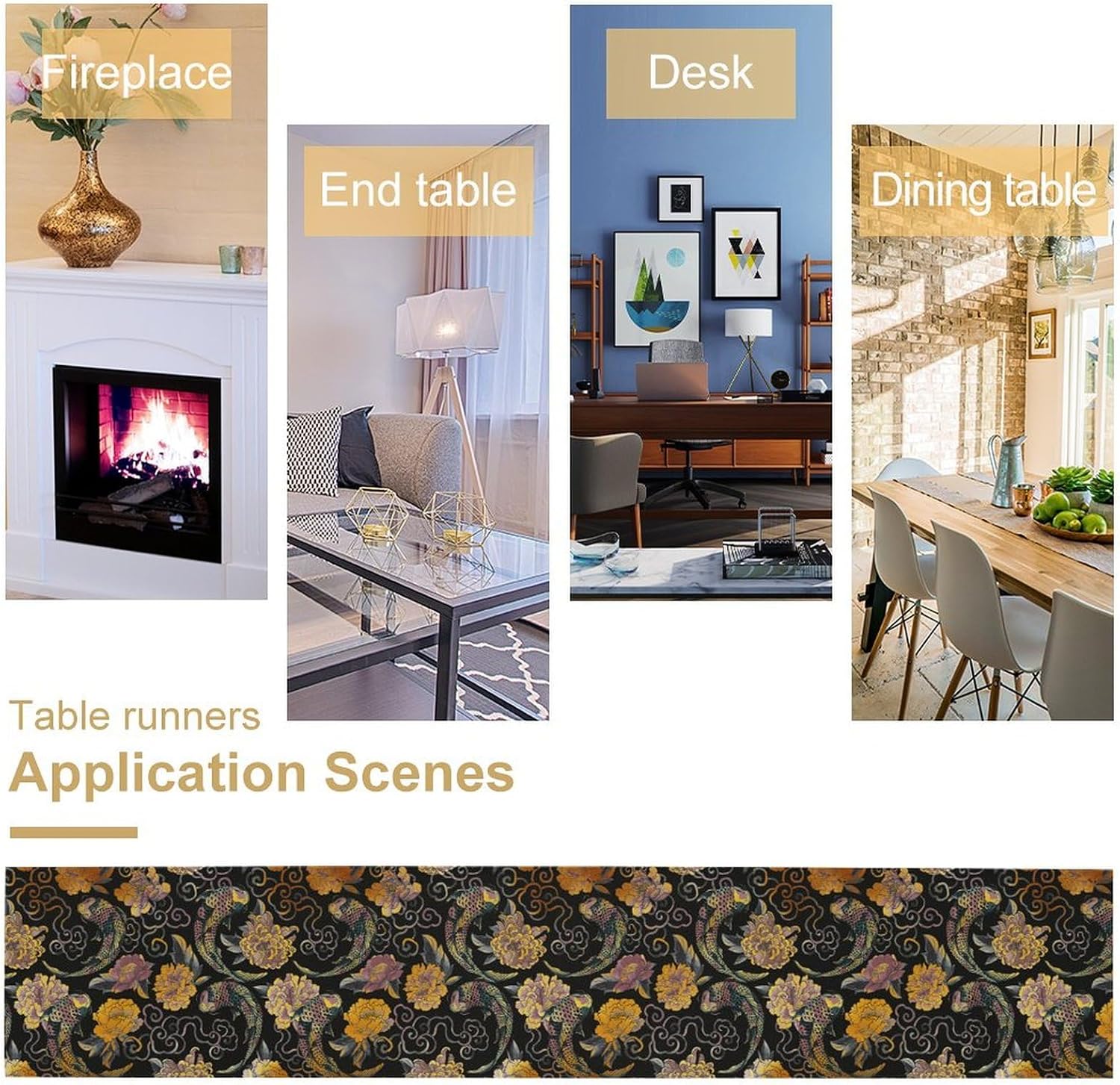 Japanese Table Runner Retro Flowers Oriental Tradition Kio Fish Art Printed Burlap Runner Home Kitchen Dining Table Living Room Decor Fabric 1 Panel W13xL70in