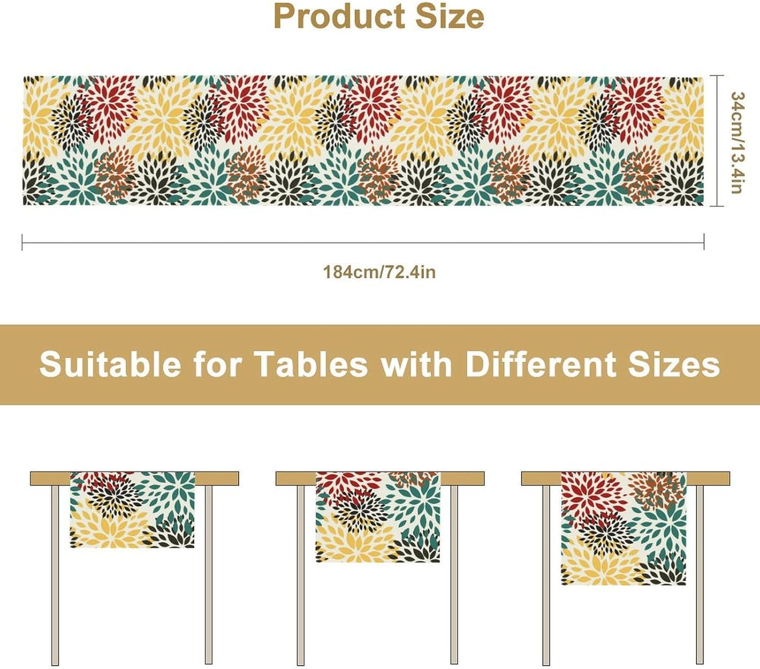 Green Red Dahlia Flower Table Runner Chrysanthemum Geometric Kitchen Dining Bedroom Living Room Table Decor for Indoor Outdoor Home Party, 13x108 Inch