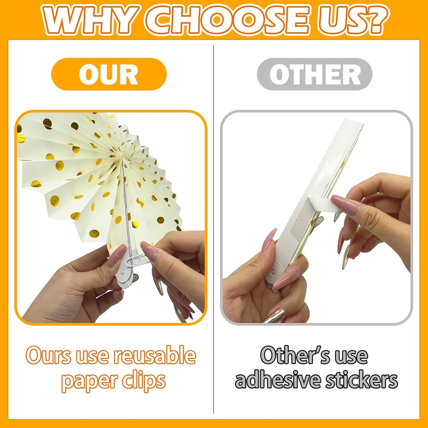 - 【Material】: Our pink peach and orange paper lanterns are made of quality thin paper and wire bracket. They are lightweight, and can be hung on the ceiling or wall. Meanwhile, compared to other paper fans party decorations that use adhesive stickers, our hanging honeycomb paper fans all use reusable paper clips. And our pennant flag banner are made of quality paper too.