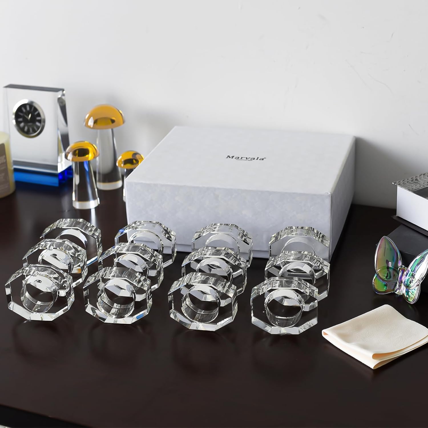 - COMPLETE SET: Includes 12 matching crystal napkin holders, providing enough for a full dinner party or family gathering