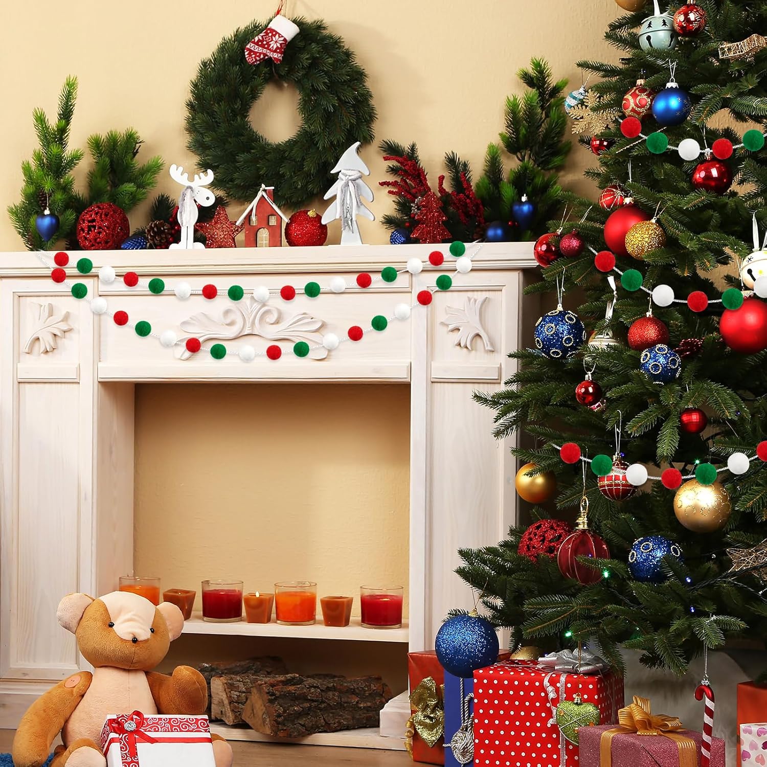 3 Pack Pom Pom Garland Colorful Felt Ball Garland Decorations, 6.5 Feet Long with 30 Balls Banner Hanging Supplies for Christmas, Parties (Red, Green & White)