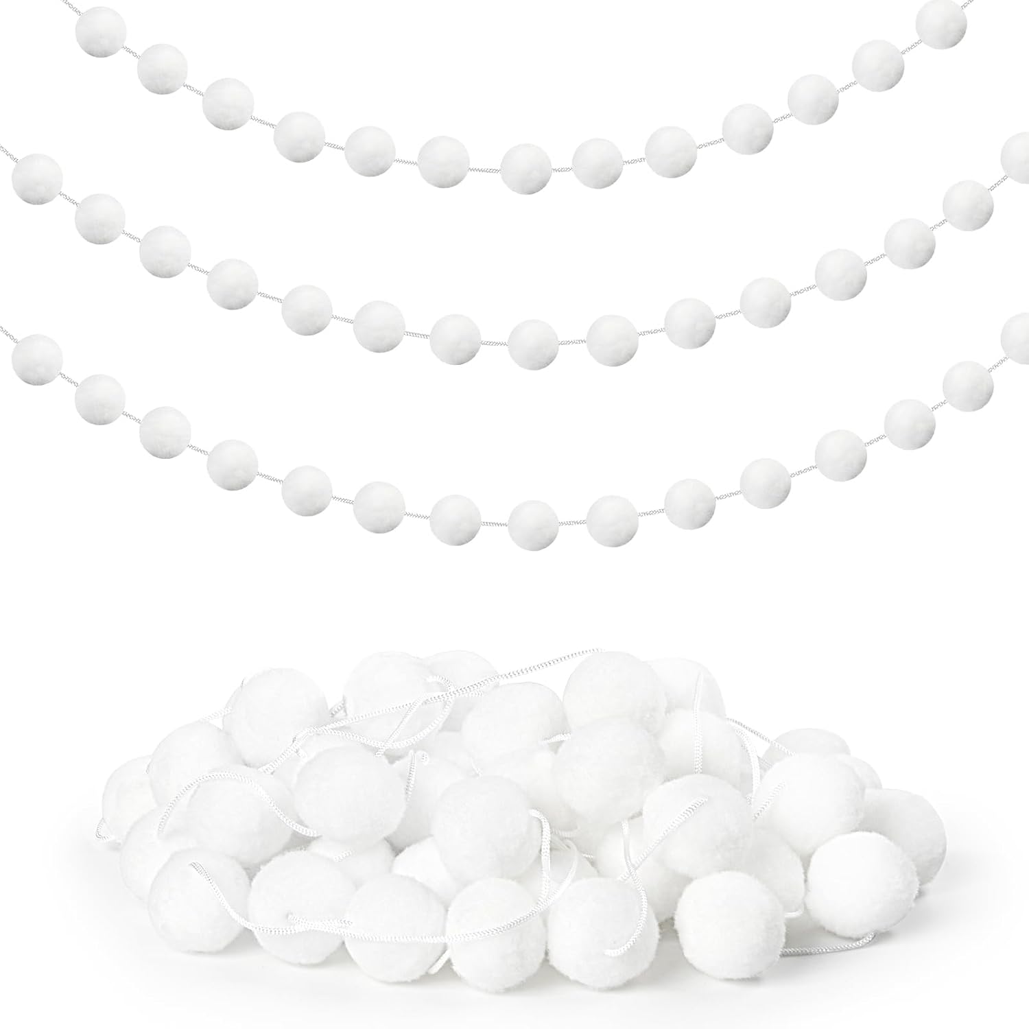 3 Pack Pom Pom Garland Colorful Felt Ball Garland Decorations, 6.5 Feet Long with 30 Balls Banner Hanging Supplies for Christmas, Birthday, Parties (White)