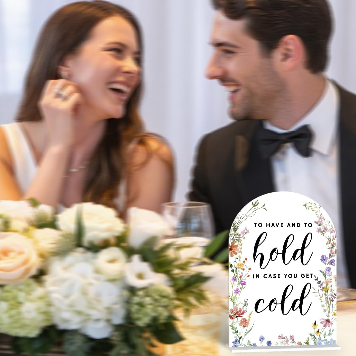 Acrylic Wedding Signs, To Have And To Hold Signs for Marriage Reception, Bridal Shower Decorations, Modern Arched Round Top Acrylic Table Top Sign with Holder for Wedding Party (White Wildflowers)