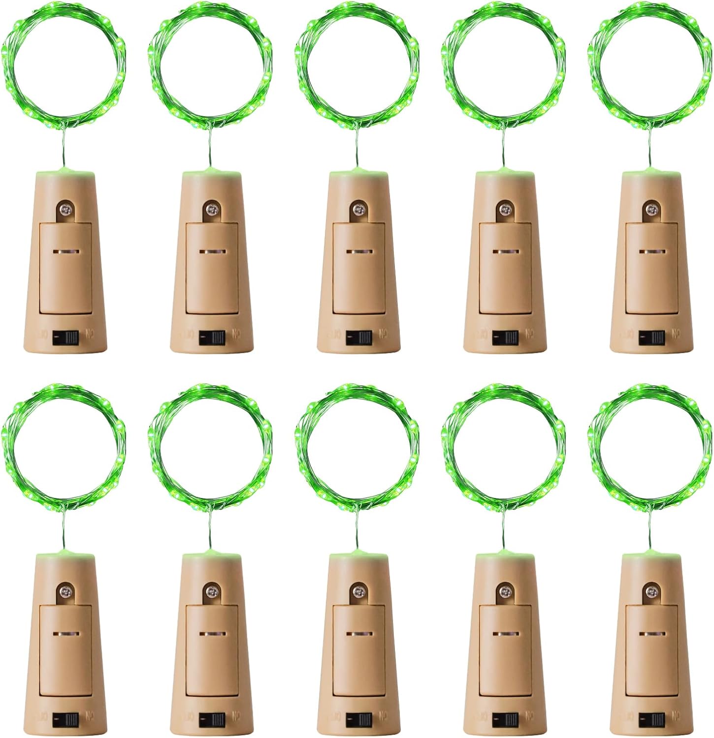 - 20LED Bottle Lights: The Aluan bottle lamp is 2 m/ 6.6ft long, 10 strands in 1 pack, each strand has 20 green LED beads in total, space between per LED: 10 cm/ 4 in. The 20 LED string lights are bright enough for illumination and decoration, but will not flash to your eyes, ideal for indoor & outdoor using