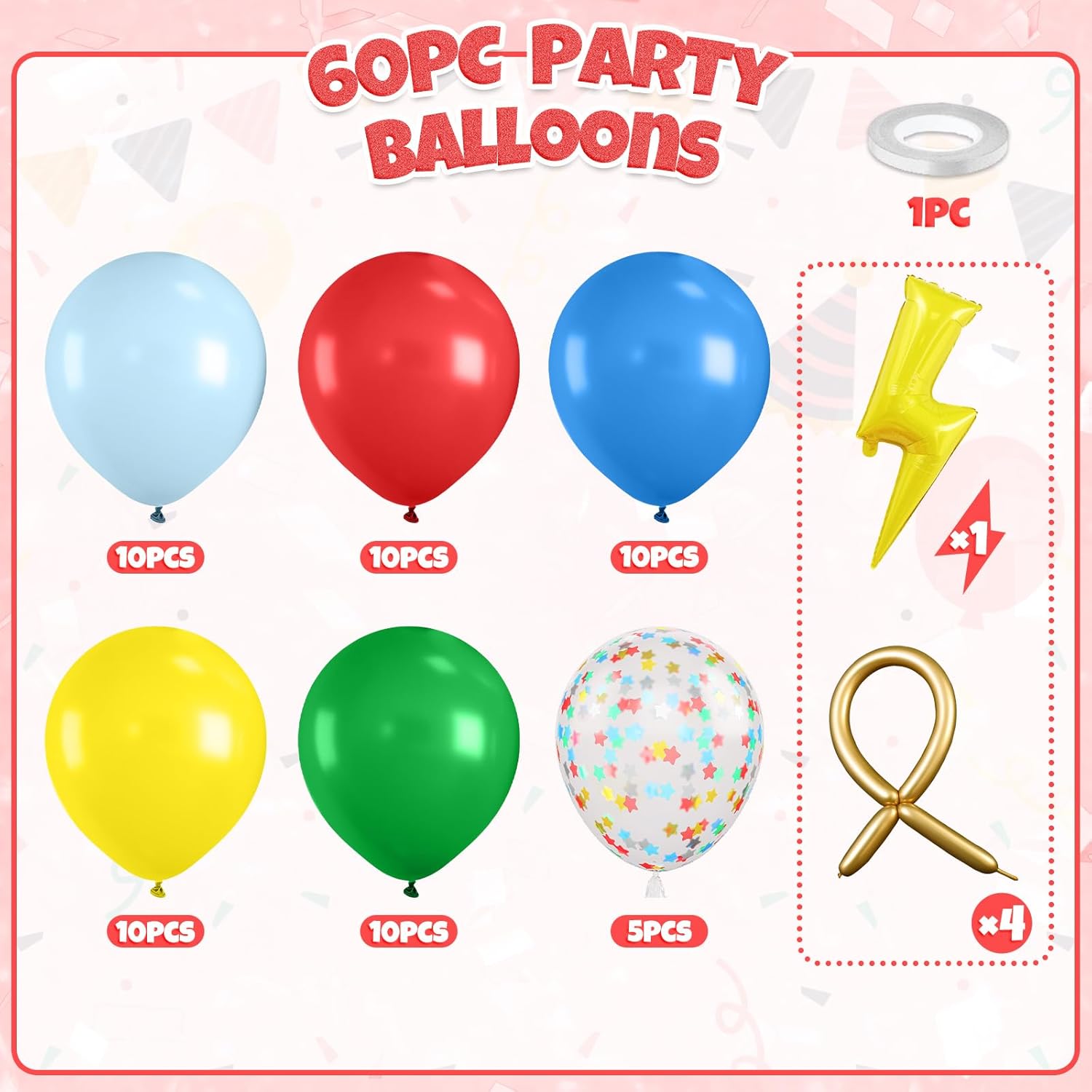 - Versatile for All Celebrations: Designed with bold and cheerful tones, this red green blue yellow balloons set is ideal for boys’ birthdays, kids’ parties, baby showers, and circus-inspired events. The mix of classic red, green, and blue with star-shaped confetti and a standout foil balloon gives your party a playful, high-energy look guests will love.