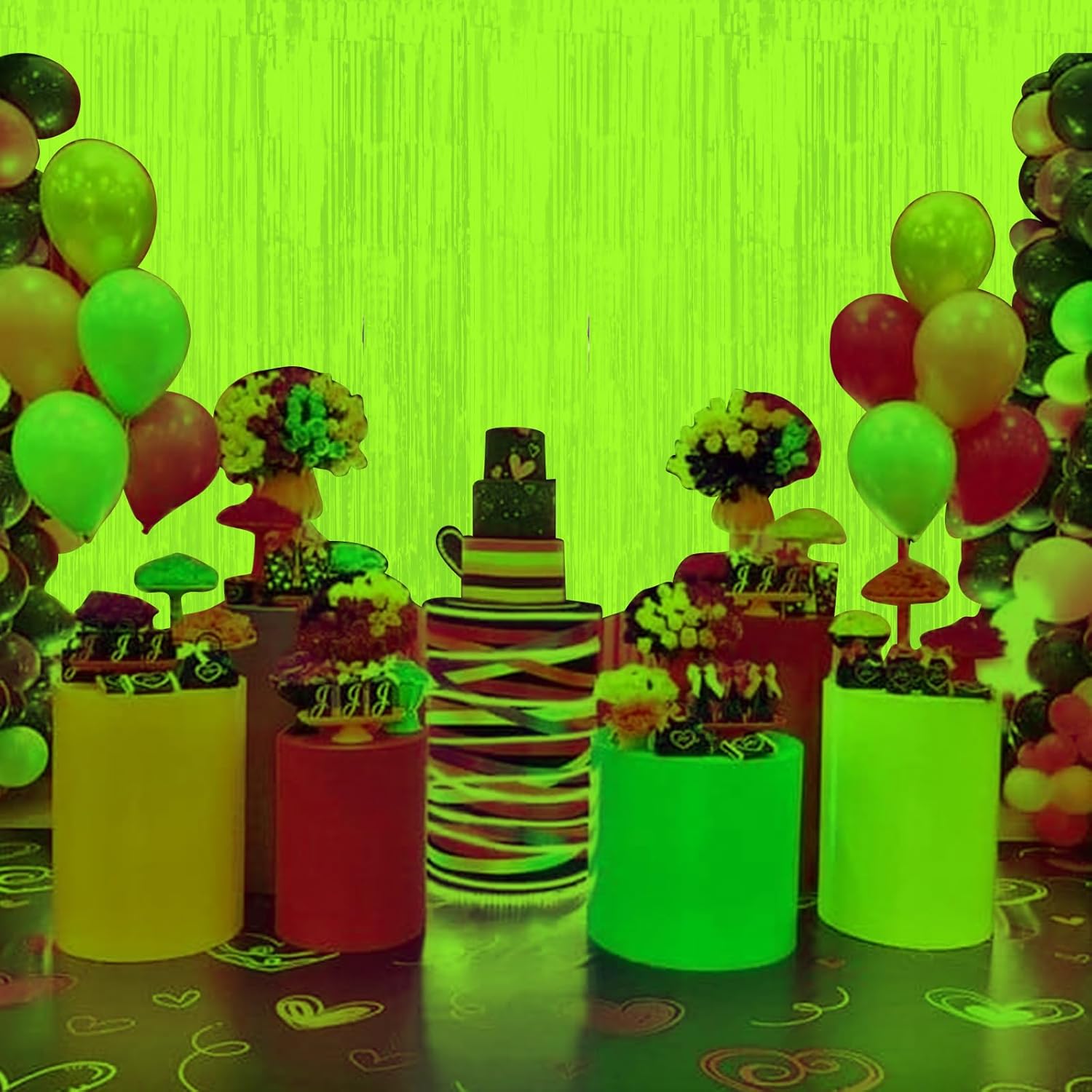 - Whatβs Inside: Included in the package are 3 yellow glow in the dark foil fringe curtains, each measuring 3.3 x 6.6 ft, making them suitable for decorating most scenes. Perfect for creating an impressive neon backdrop for neon birthday party decorations and glow in the dark party supplies