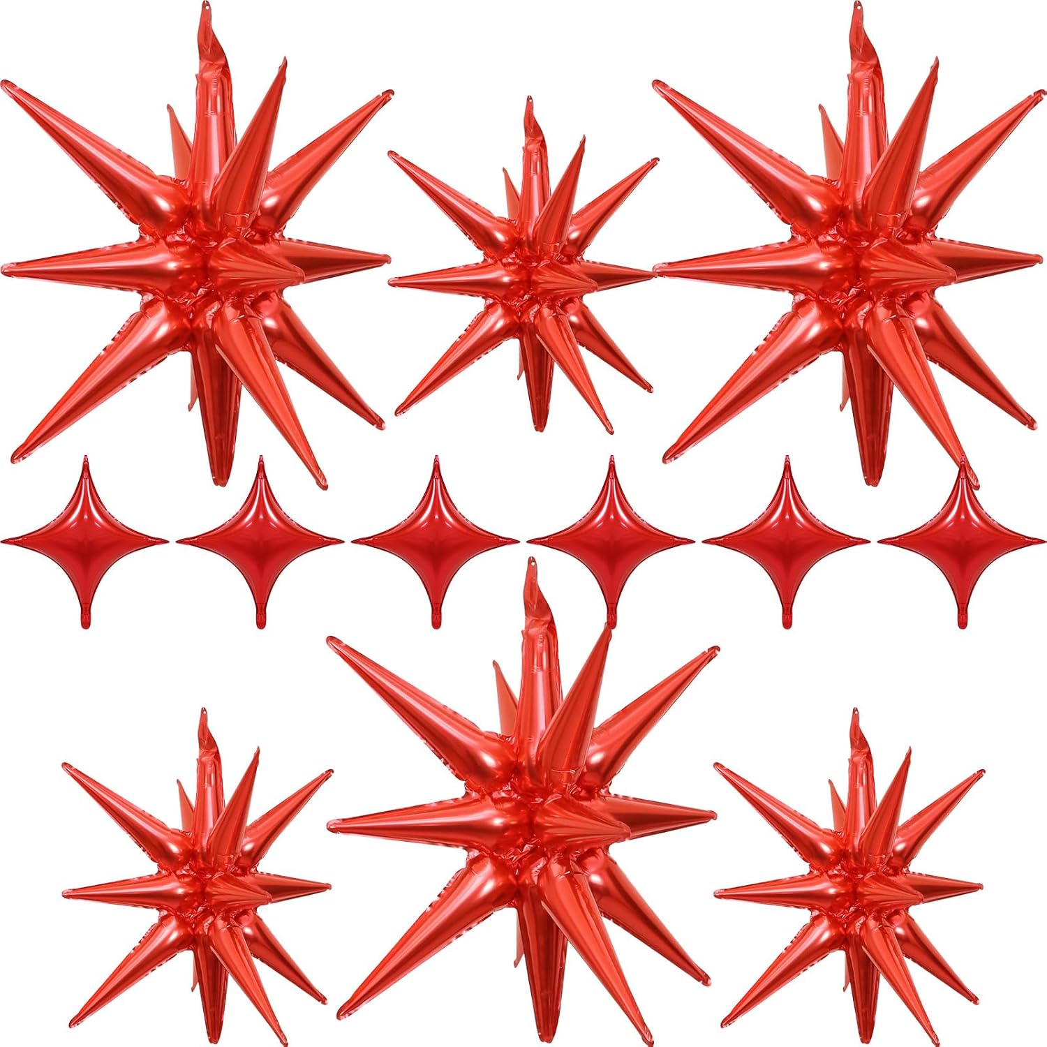 Red Star Balloons 12pcs, 27/22 Inch Foil Star Explosion Balloons, Large Spike Mylar Cone Balloon, Fireworks Shape Balloon Decor for Wedding Engagement Valentine's Day Christmas Birthday