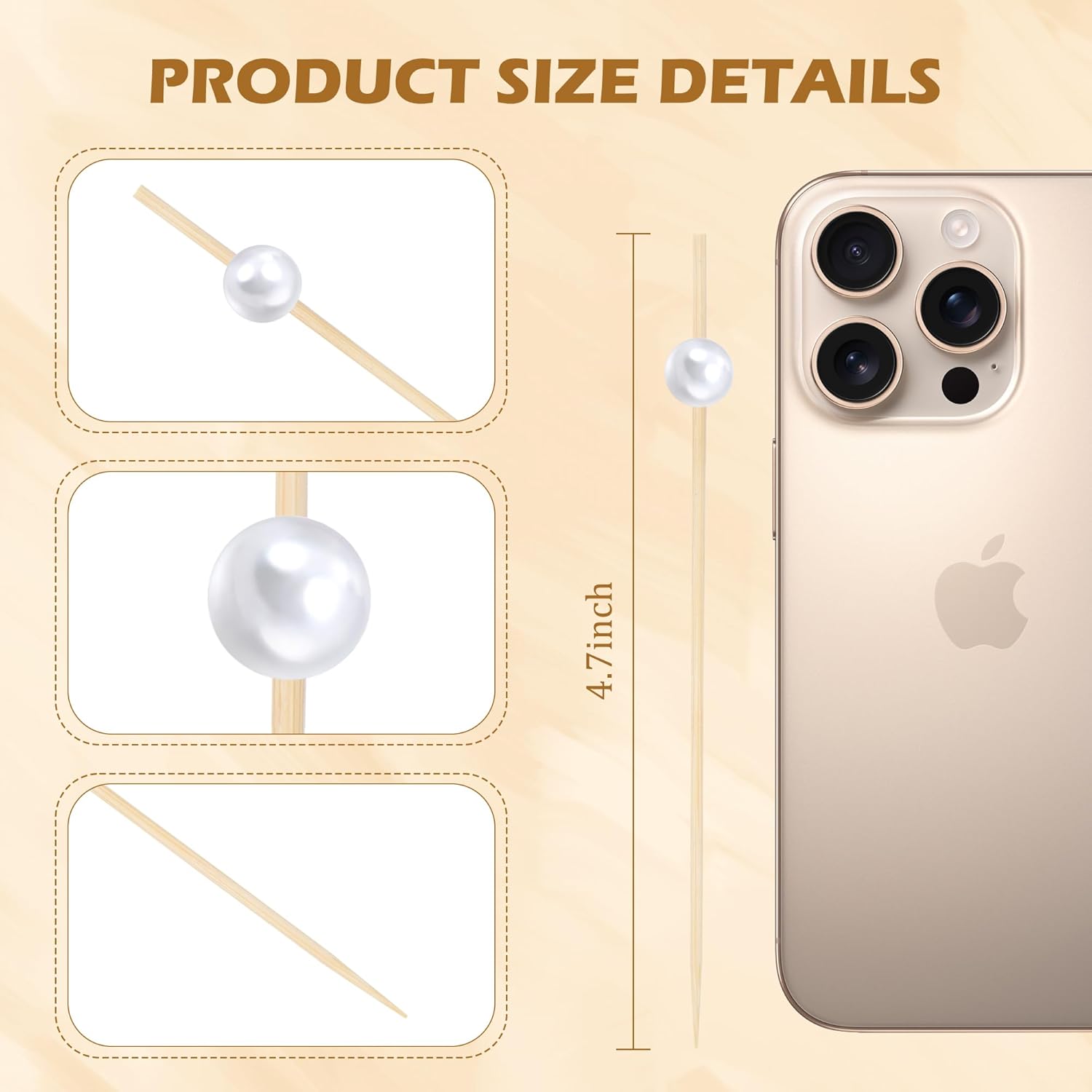 - Special Decorative: The cocktail toothpicks has white pearl decoration on the top,not like simple and lackluster cocktail toothpicks.Such special amazing cocktail skewers make your appetizer, dessert and drinks presentation stand out, make you and your friends enjoy party.
