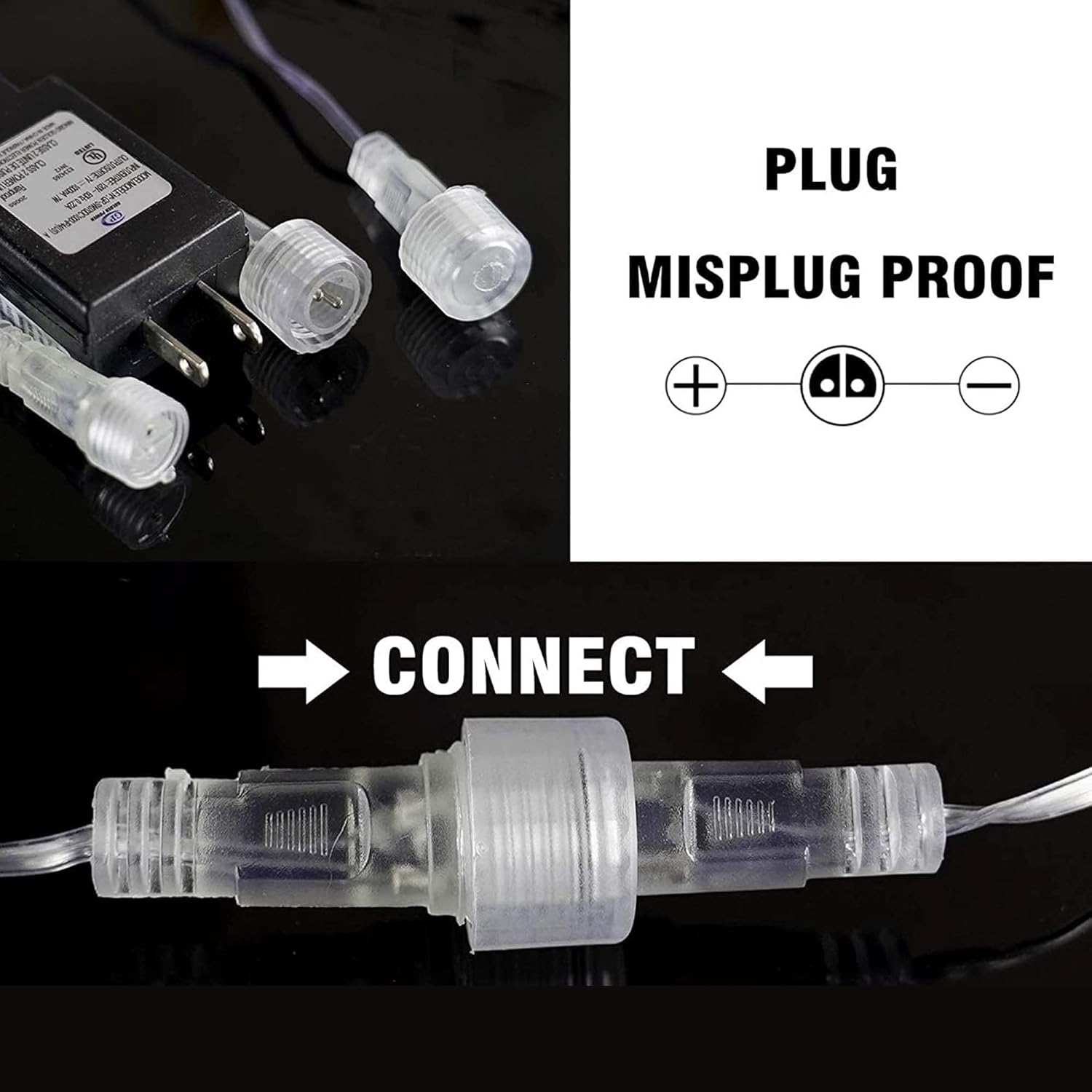 - Waterproof & Safety: Our Christmas lights have an IP65 waterproof rating, making them suitable for outdoor use without worrying about rain, snow, or other adverse weather conditions. Our outdoor Christmas lights are UL certified, equipped with a transformer that operates the string light at 7V low voltage, which is below the human body's safe voltage