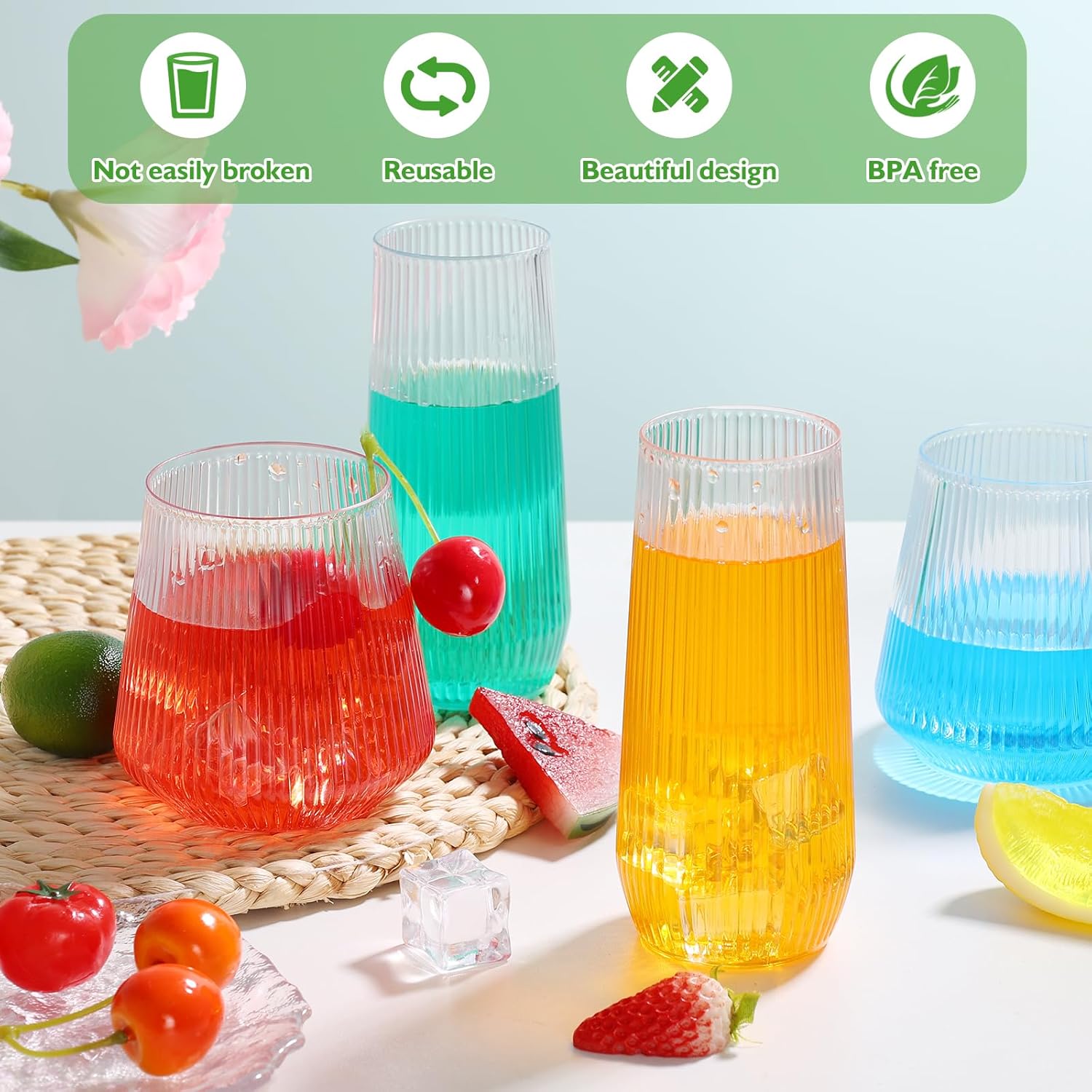- 【Versatile Usage】These plastic stemless wine glasses bulk are perfect for a wide range of beverages, including champagne, wine, juice, whiskey, drinks, cocktails, water, various mixed drinks and more. Ideal for indoor and outdoor functions, home, office, bars, weddings, catering, barbecues, birthday parties