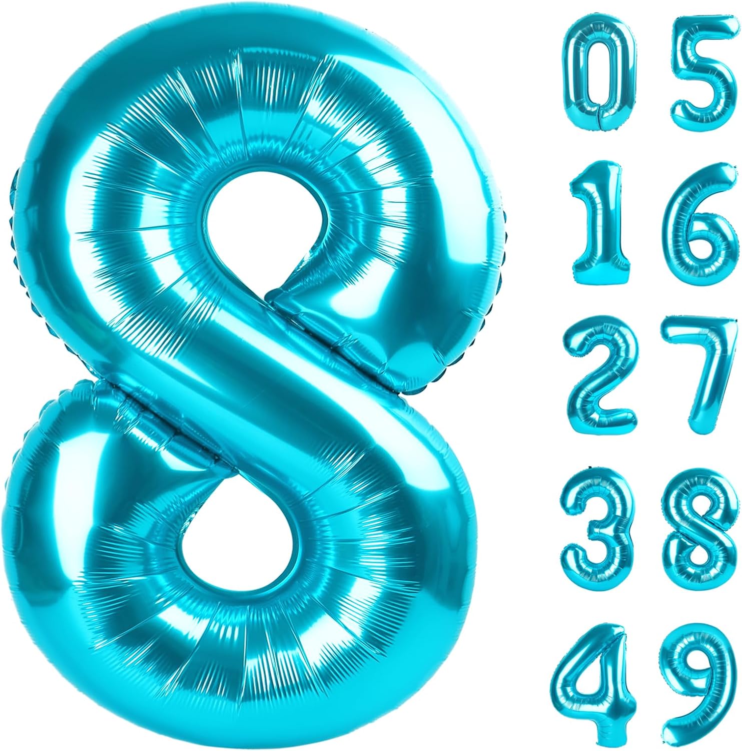 - 1.Make Party Charming with Blue Number Balloon: You will receive an uninflated 40 inch number 8 balloon. Big number balloons are always the best statement of romance and surprise. Blue balloons symbolize vitality exoticism, adding glamour to birthday parties.Bright metallic blue and huge size make blue balloons a highlight of special parties. Choose one or more numbers from 0-9 birthday numbers,and use 8 18 28 38 48 58 68 78 80 98 balloon numbers to create a charming party!