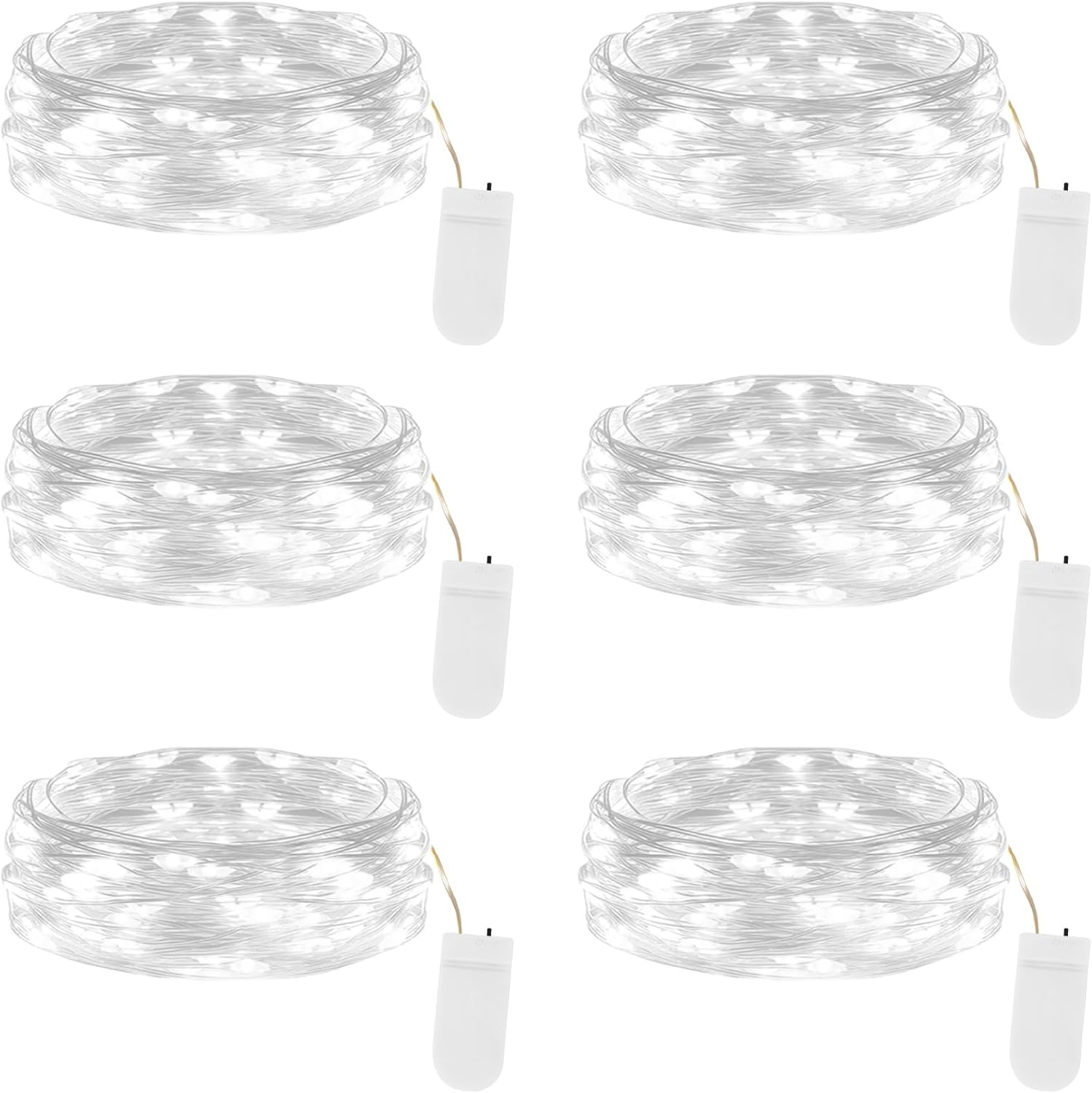 - ă6-Pack Battery Operated String Lightsă Powered by 2 CR2032 batteries, these fairy lights are equipped with 20 energy-efficient micro LEDs that are perfect for use in mason jars, wine bottles, vases, DIY crafts, wreaths, centerpieces, or gift wrapping. Ideal for cozy evenings, festive holidays, or romantic celebrations, a soft and magical glow is effortlessly created, transforming ordinary moments into unforgettable memories