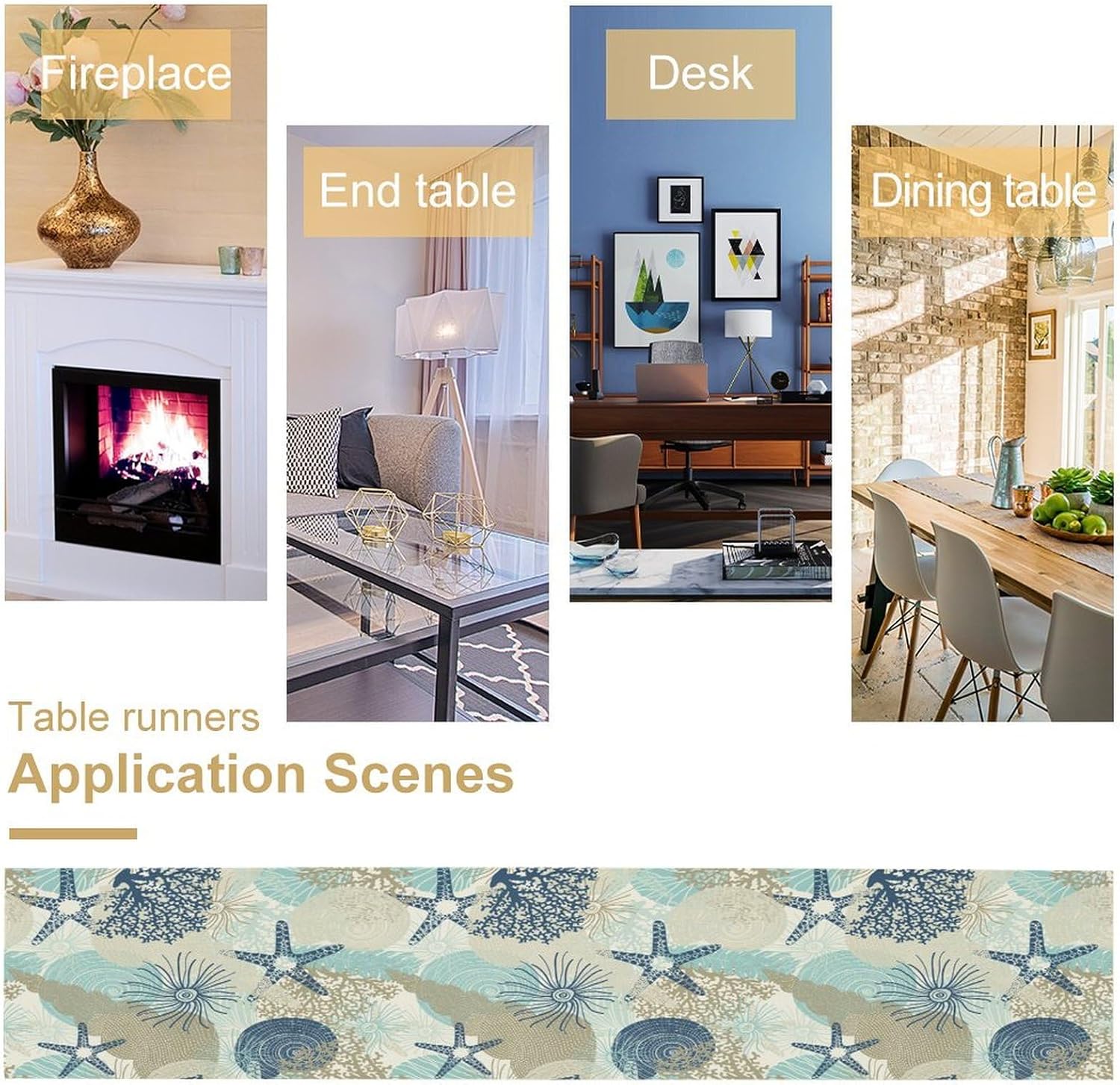 Nautical Coastal Table Runner,Ocean Themed Starfish Coral Conch Beach Kitchen Dinning Table Decoration for Indoor Outdoor Home Party Decor 13x60 Inch