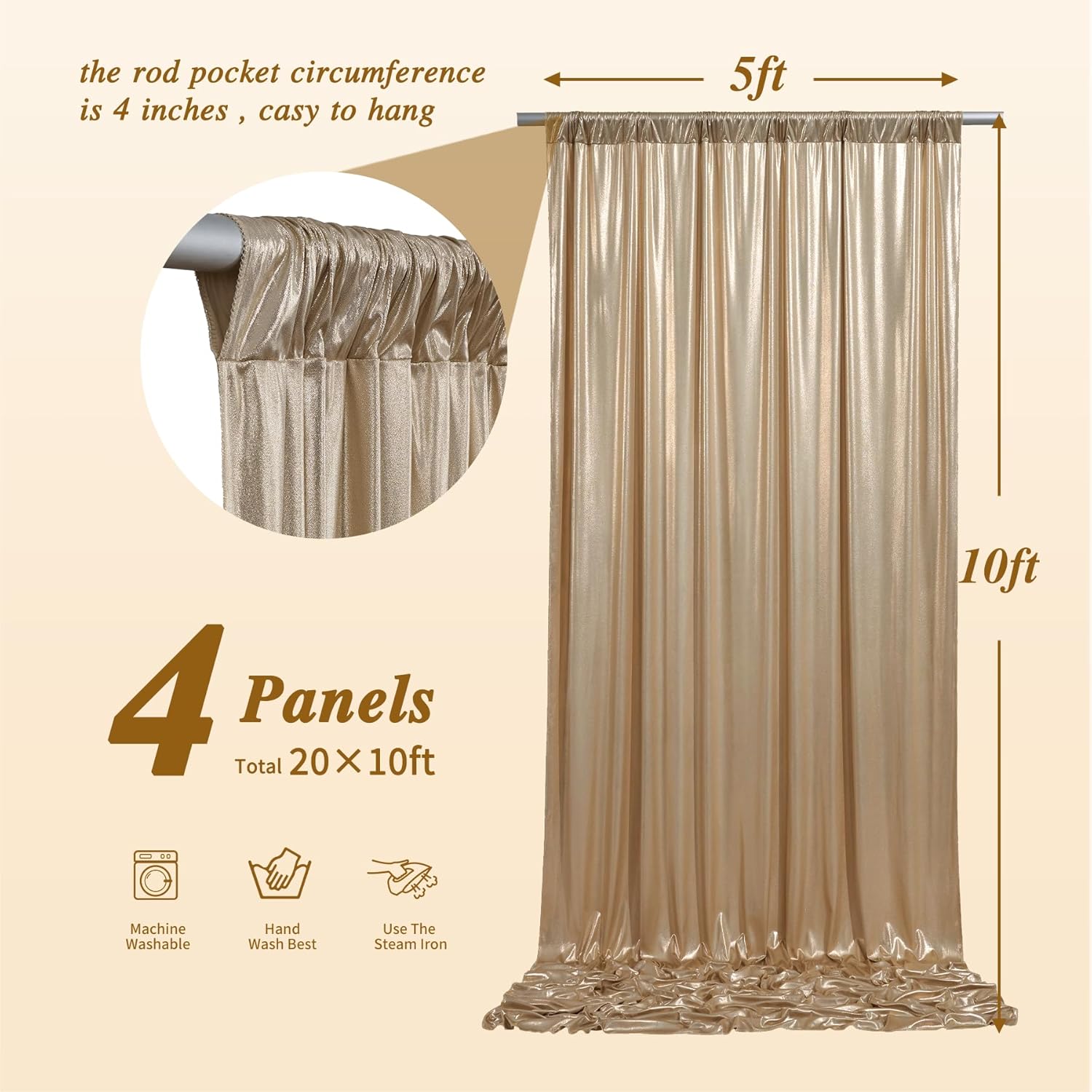 20ftx10ft Champagne Sequin Backdrop Curtain for Parties, 4 Panels Wrinkle Free Glitter Photo Backdrop Drapes Shimmer Back Drop Cloth for Wedding Birthday Christmas Photography Background