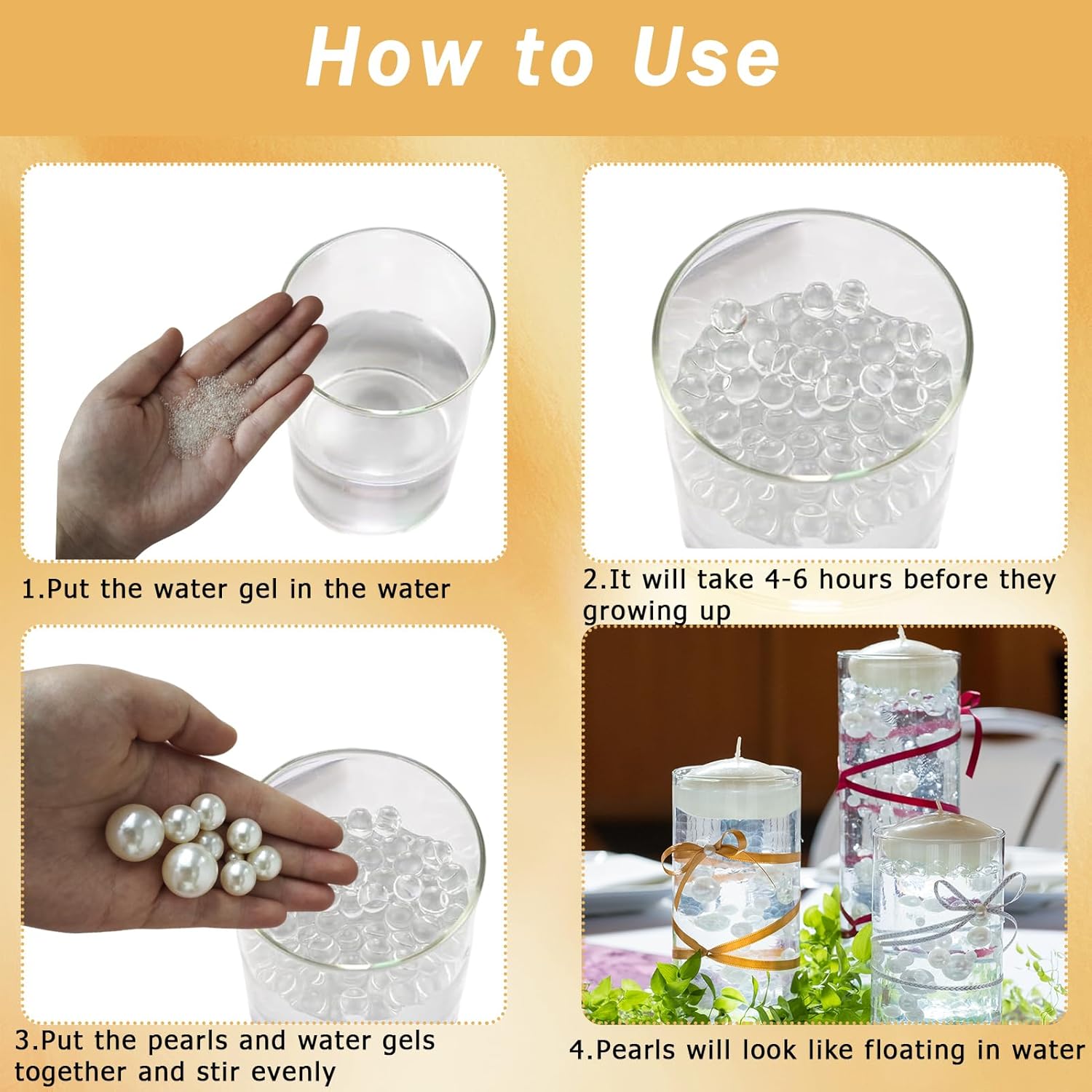- 【Easy to Use】: Simply soak the water beads for 4-6 hours to achieve a 7-8mm size, then pair them with the fake pearls for a floating effect. The fake pearls themselves do not float, however, the water beads create a beautiful, dynamic display in any vase or container