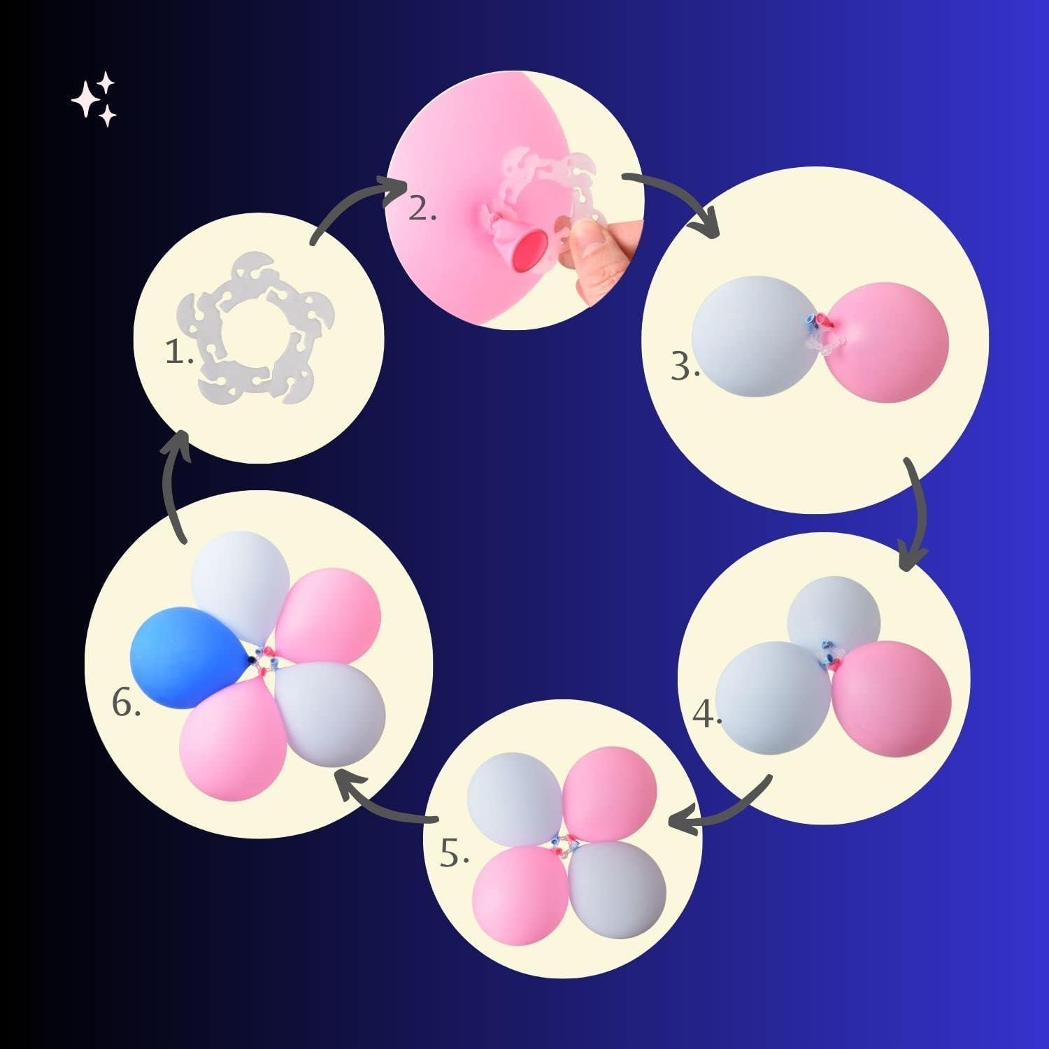 - Easy Assembly: Each balloon accessories clips can fix 5 balloons, you just inflate your balloons and tie, then install the balloon over the clips and adjust the shape