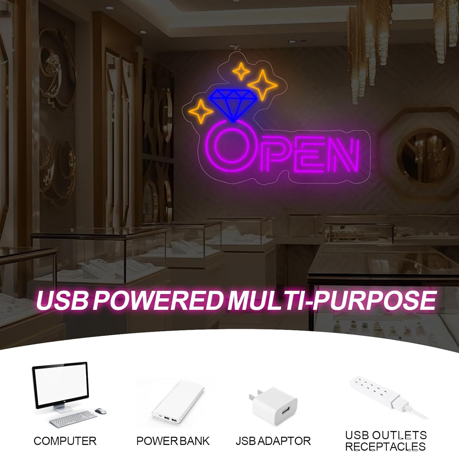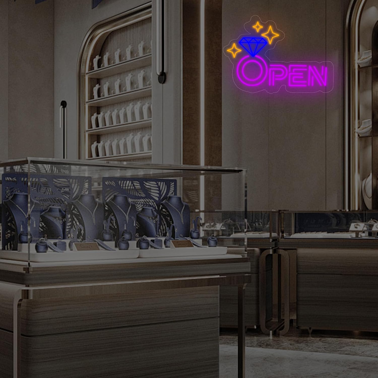 - What you get: Diamond open neon sign x1, hanging chain x1, wall hooks x2. Every LED light undergoes rigorous quality checks before it ships. If you have any problem with our neon light, please feel free to contact us. We will try our best to serve you