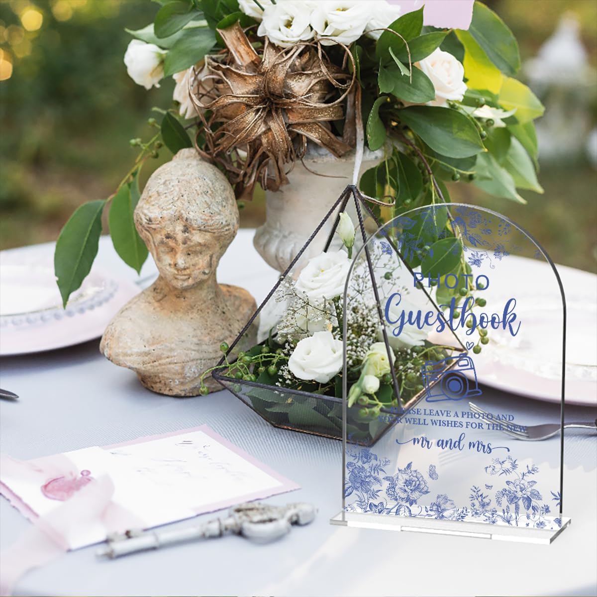 Acrylic Wedding Signs, Dusty Blue Wedding Decor, Blue Weddings Decor, Photo Guestbook Signs for Reception, Modern Calligraphy Arch Acrylic Table Top Sign for Weddings Parties Dinners (Clear)