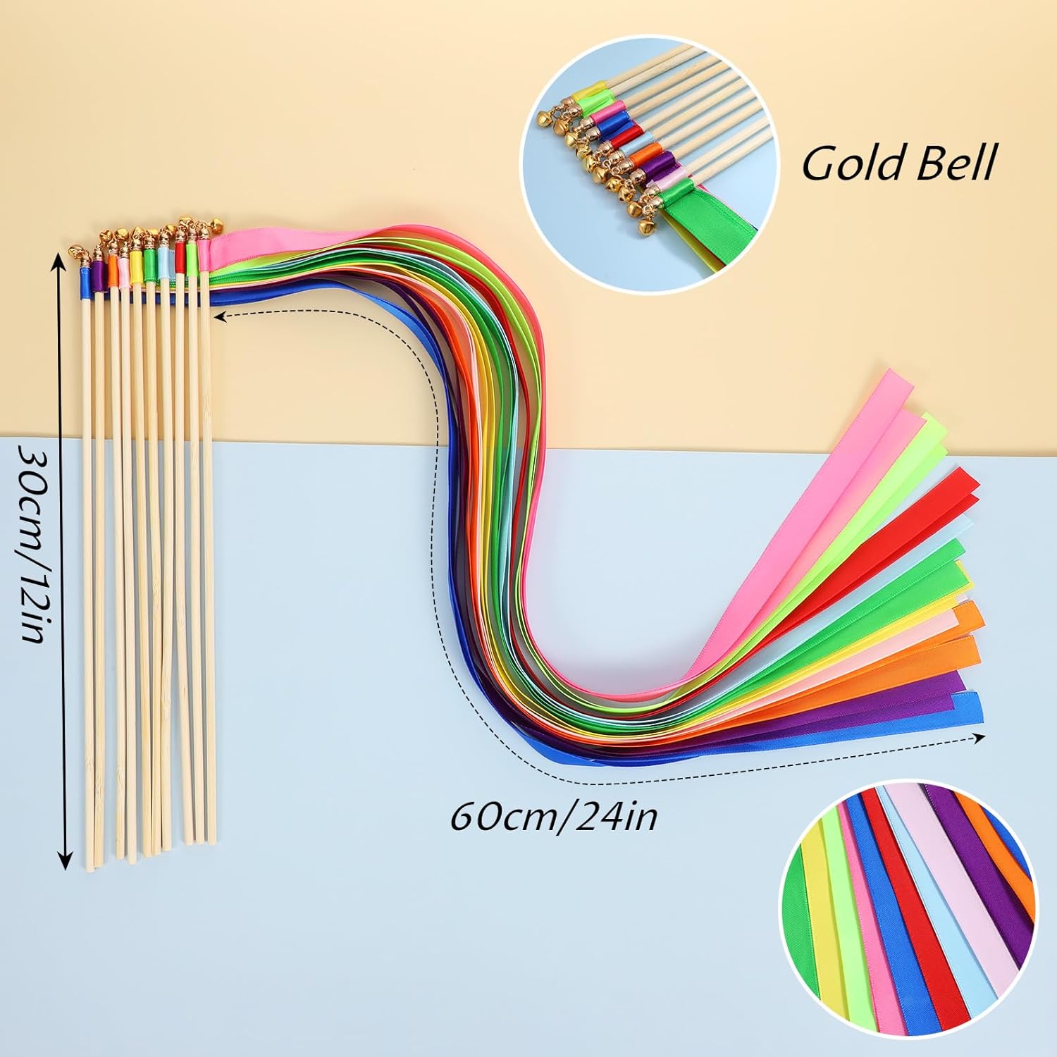 - 【Sizes】: the length of stick is approx. 30 cm/ 12 inches; Ribbons length is 50 - 60 cm/ 20 - 24 inches, 1.6 cm/ 0.6 inches in width; Warm note: please store them in dry place.