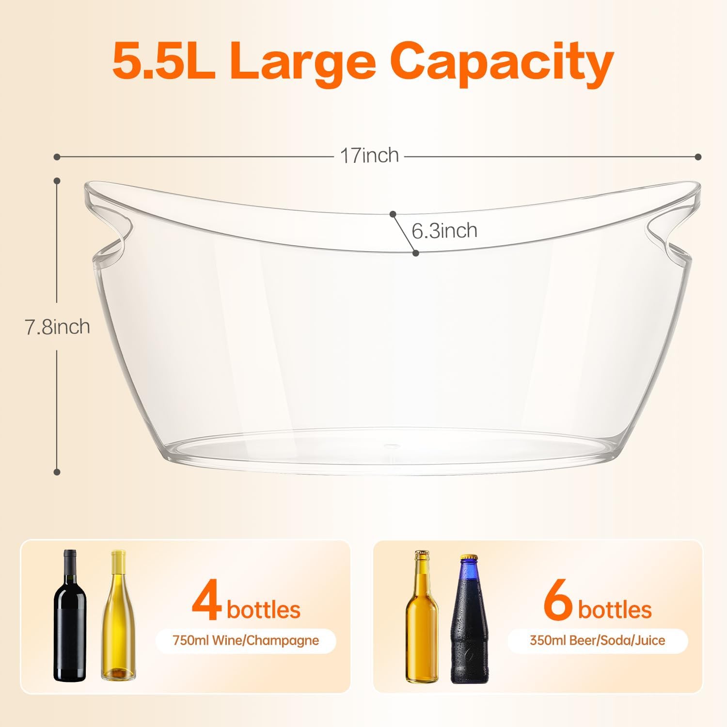 Ice Buckets for parties Wine Bucket, Clear Acrylic 5.5 Liter Plastic Tub for Drinks and Parties, Food Grade, Perfect for Wine, Champagne or Beer Bottles (2Pcs)