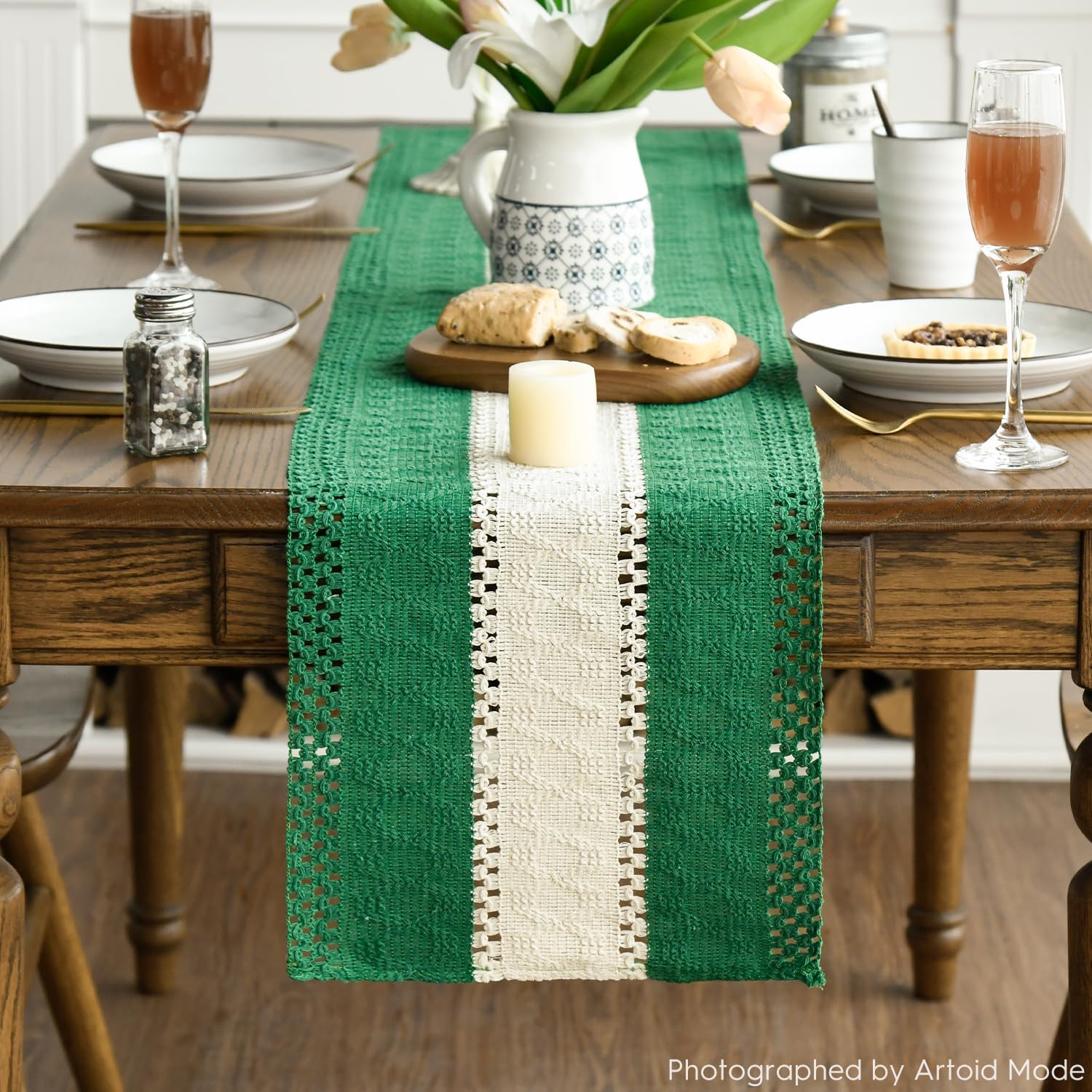 Artoid Mode Dark Green Farmhouse Rustic Table Runner, Seasonal Hollow Kitchen Dining Table Decoration for Home Party Decor 12x90 Inch