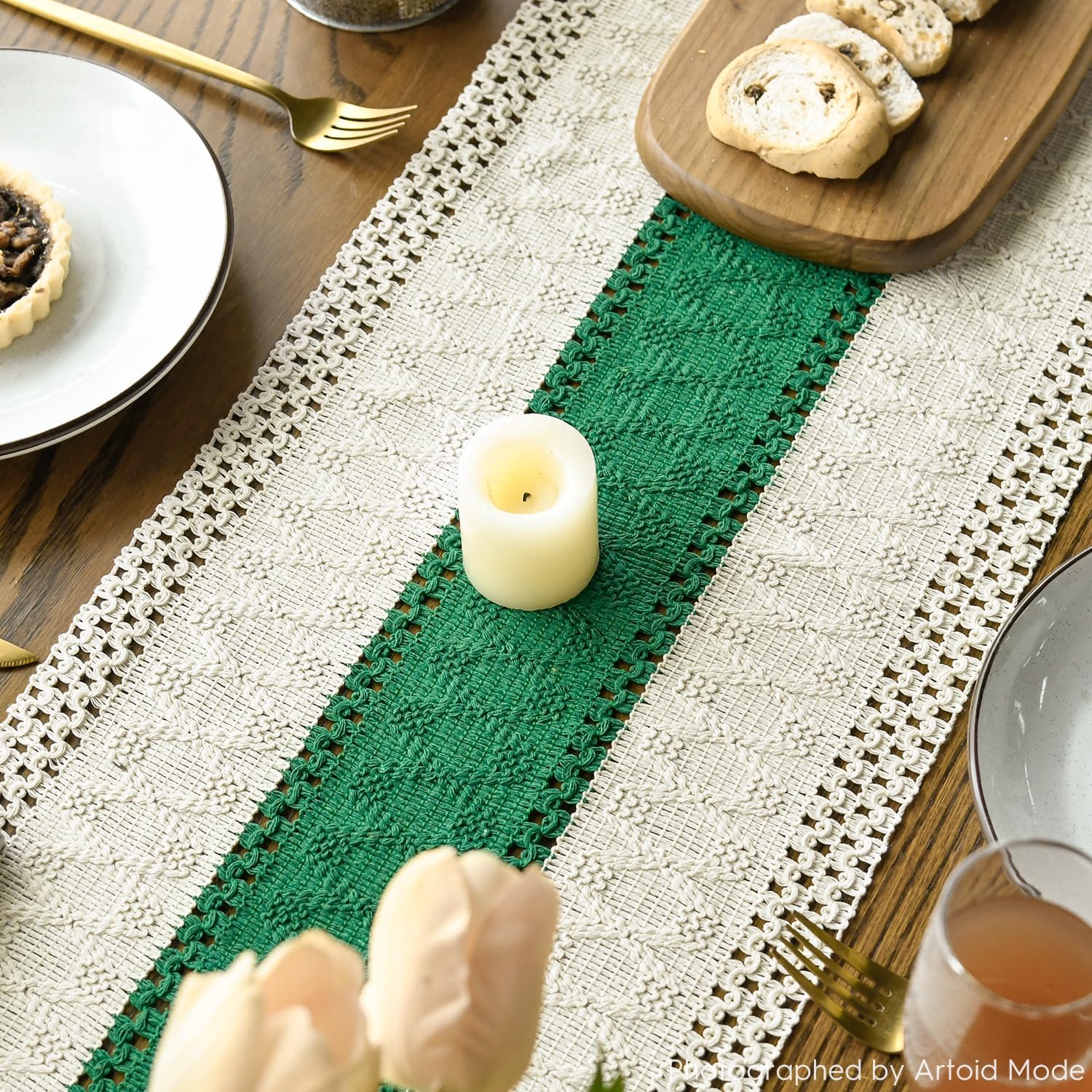 Artoid Mode Dark Green Farmhouse Rustic Table Runner, Seasonal Holiday Hollow Kitchen Dining Table Decoration for Home Party Decor 12x120 Inch