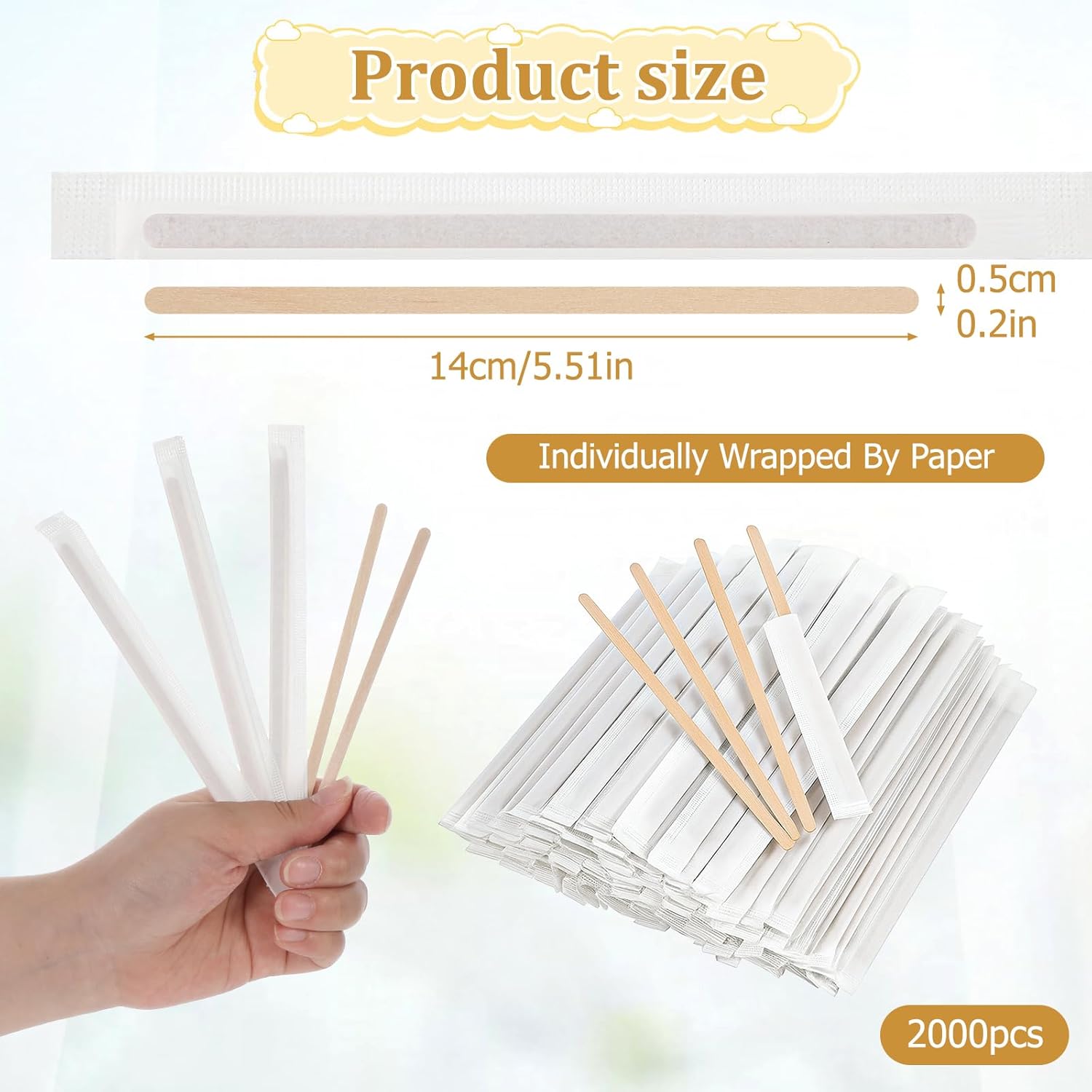 - Premium 2000-Pack Birch Wood Stir Sticks: This bulk set provides an abundant supply of 2000 high-quality, disposable coffee stir sticks - enough for daily use in cafes, offices, or events. The natural birch wood material ensures durability without affecting beverage flavors, making it ideal for frequent use in busy establishments.