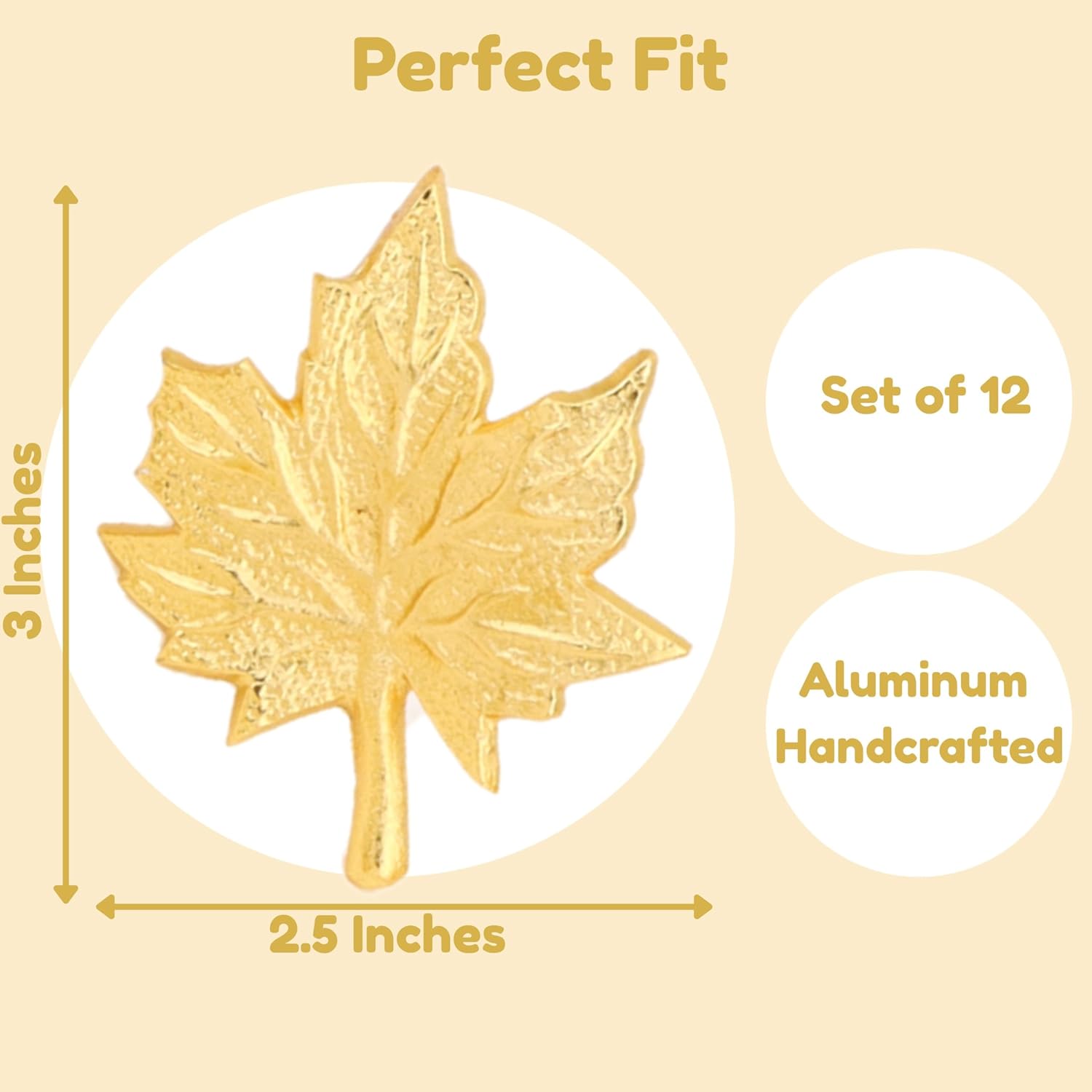 Set of 12 Maple Leaf Napkin Rings - Handcrafted Aluminum Napkin Holders for Cloth & Paper Napkins, Elegant Table Décor for Wedding Receptions Thanksgiving Christmas Holiday Parties (Gold) CLEENTABLE