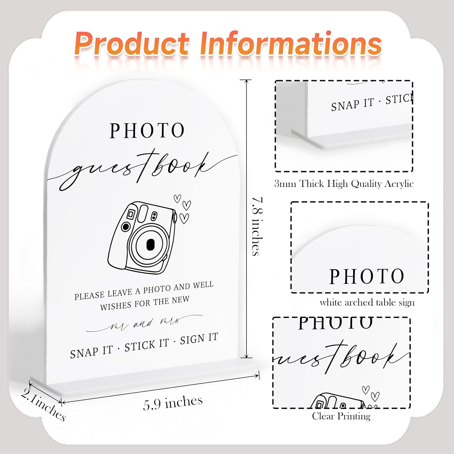 Photo Guest Book Sign, White Arch Acrylic Wedding Sign, Wedding Guest Book Alternative, Bridal Shower Decor, Engagement Party Decor, Centerpiece Table Decorations Party for Bride and Groom-24