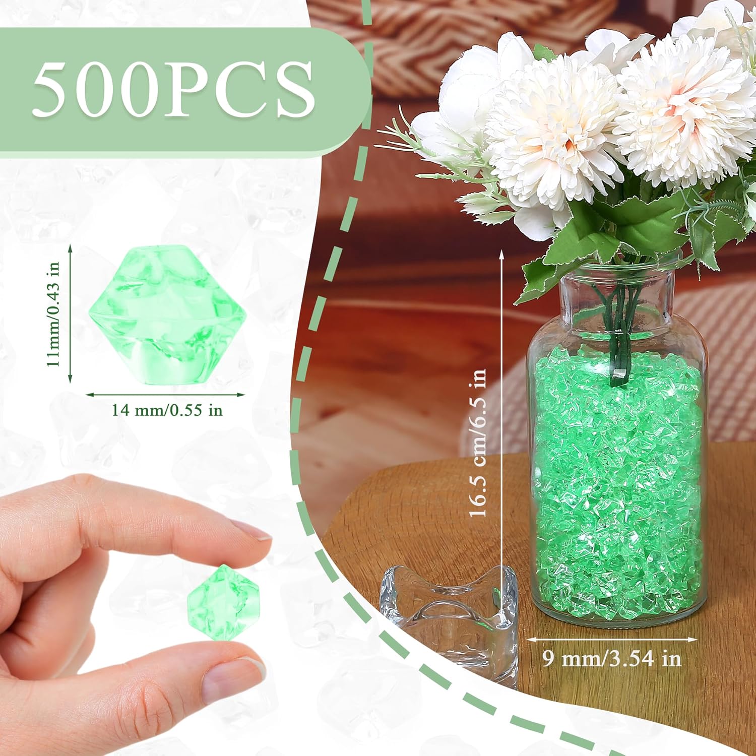 LAIDANLA 500PCS Green Acrylic Gems Vase Fillers for Centerpiece Green Fake Ice Cubes Plastic Diamonds Fake Crushed Rocks DIY Party Table Scatter Prop Wedding Decoration Accessories