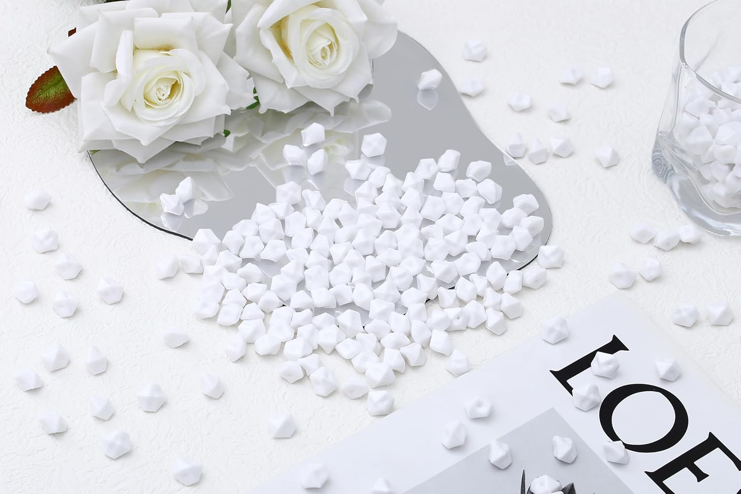 - White Acrylic Ice Cubes – Each box includes 500 white fake ice cubes, approx 11–14mm irregular acrylic gems. White vase fillers are ideal for centerpieces, wedding décor, table scatter, and party styling. Their bright hue adds a clean, sophisticated touch to any event or home décor