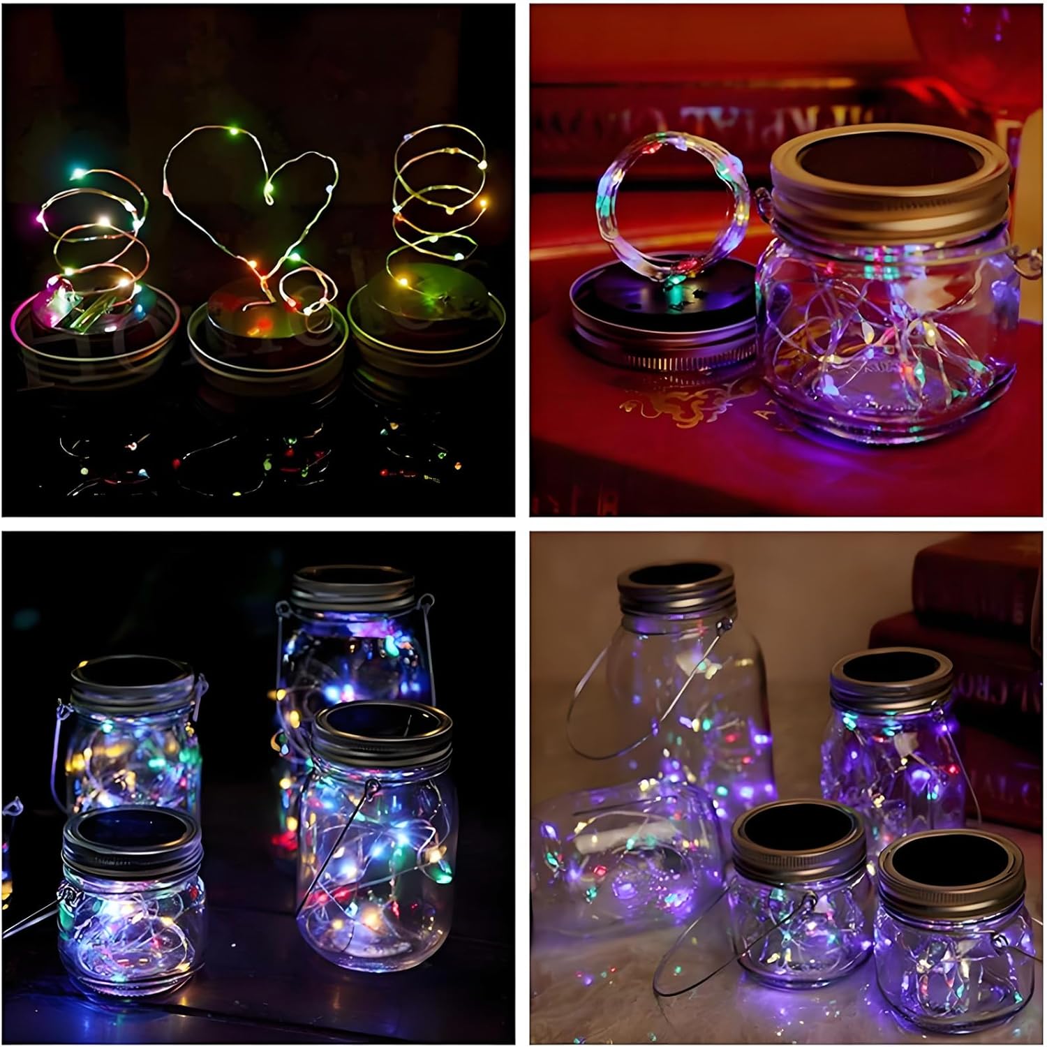 VOOKRY 12 Pack Solar Mason Jar Lights, 30 LED Mason Jar Lids Waterproof Firefly Fairy String Lights with 12 Hangers(No Jars), for Outdoor Patio Garden Yard Lawn Party Wedding Decoration - Multicolor