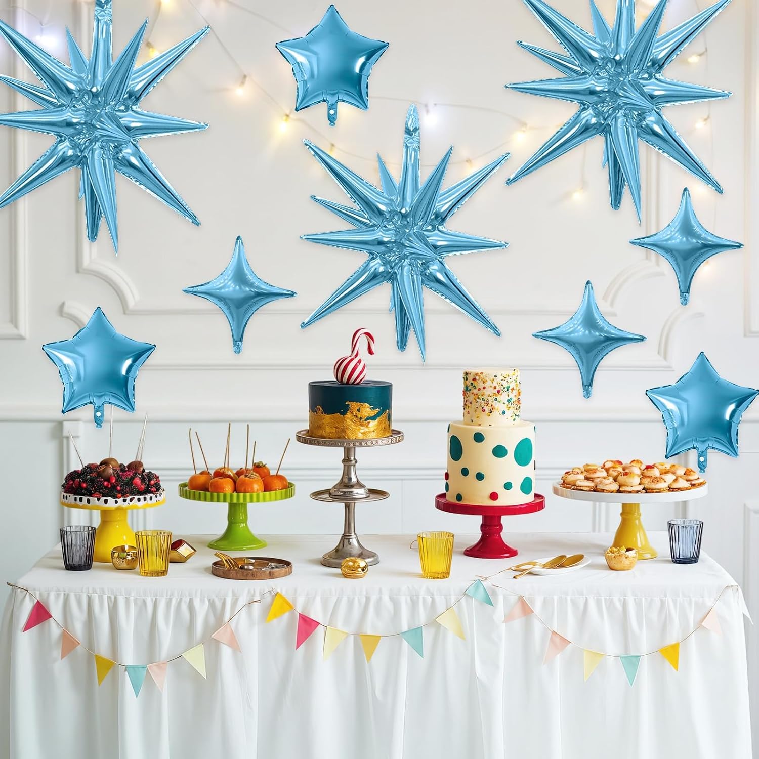 - Package: This set includes 6pcs 22inch blue explosion star foil balloons, 4pcs 10inch blue star foil balloons, 6pcs 10inch blue four angle star balloons, and a ribbon. Perfect for creating a dazzling party atmosphere.