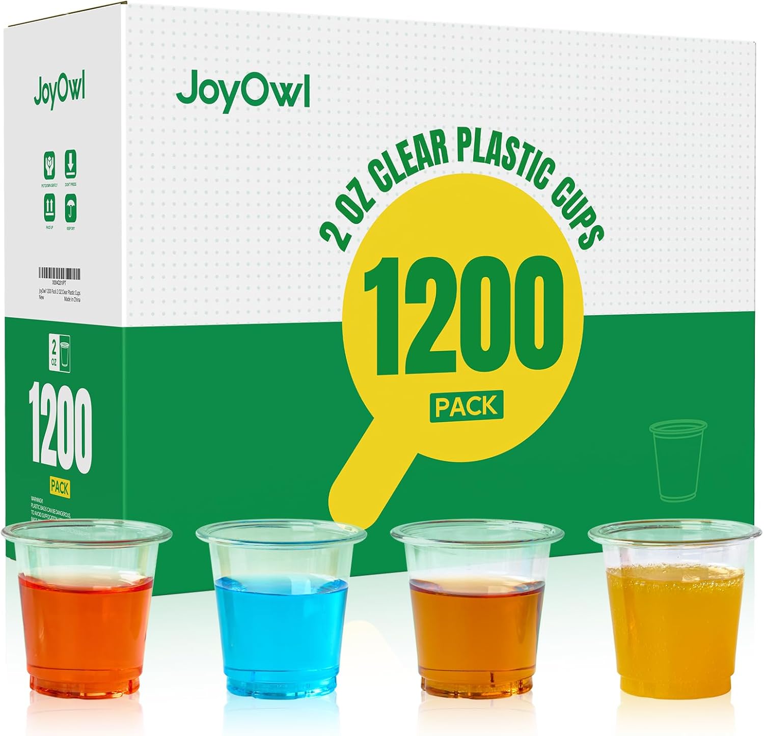 1200 pack 2 OZ Plastic Shot Glasses, Mini Disposable Shot Cups for Party, Events, Whiskey and Wine Tasting