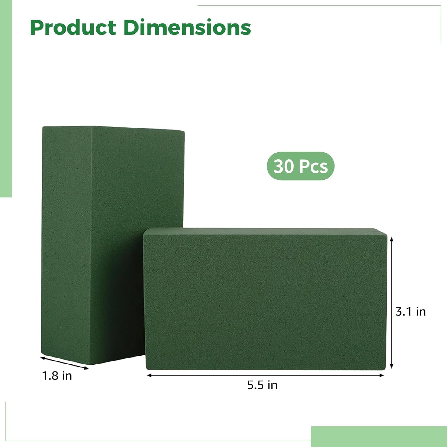 30 PCS Floral Foam Blocks, Green Flower Foam Bricks for Fresh & Artificial Flowers, Wet and Dry Florist Foam for Arrangements, Crafts, Bouquets, DIY Centerpieces, 5.5 x 3.1 x 1.8 in