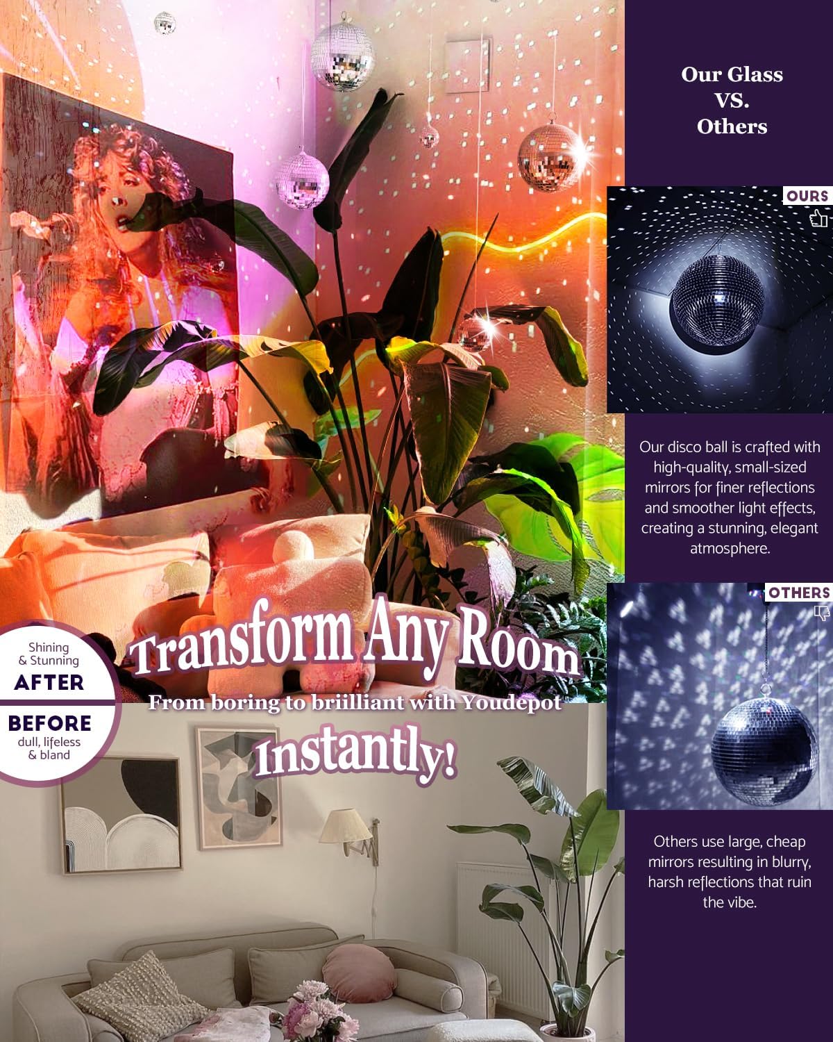 - Versatile for All Themes and Seasons Use as disco ball props, party accents, or festive hanging disco ball decorations—ideal for weddings, birthdays, holidays, or 70s parties.