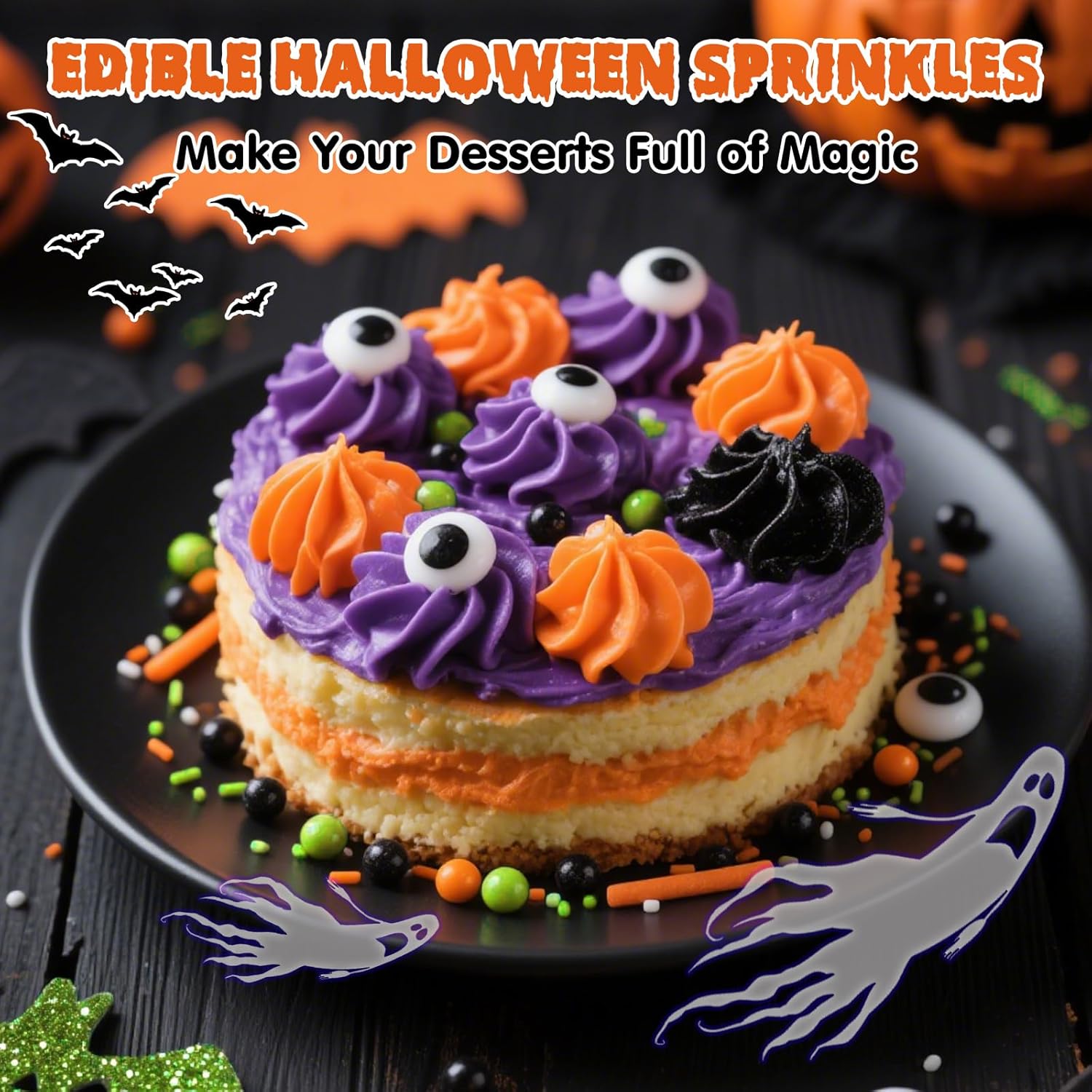 Edible Halloween Sprinkles,Black White Eyes Purple Green Orange and Black Pearls and Jimmies Mixed,130g/4.58ounce,Monster Sprinkle Perfect for Cake Decorations, Baking, Ice Cream, Cookies, Cupcake Topper,Halloween Supplies Children's Party