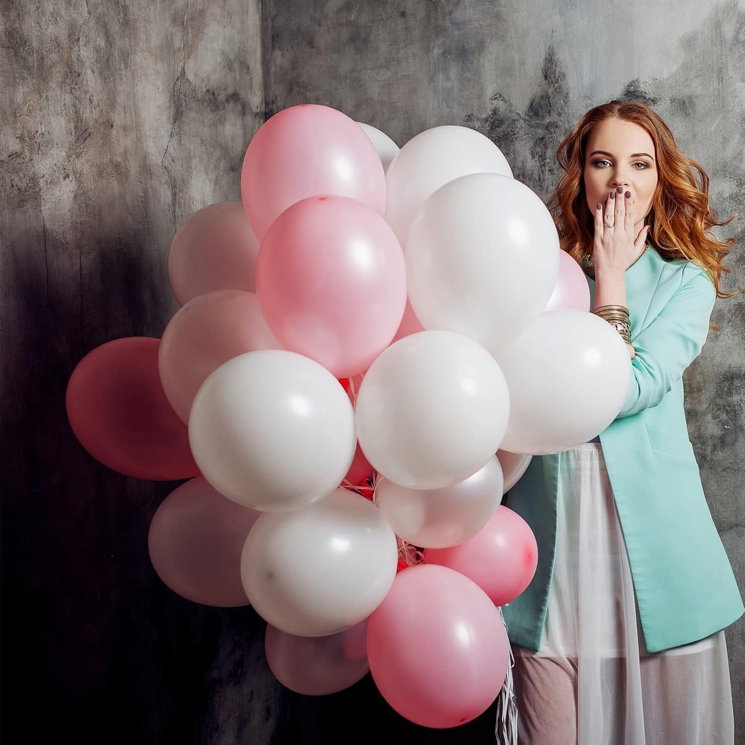 - 【WHAT YOU WILL GET】100pcs 12 inch party balloons in baby pink color +2 rolls of pink ribbons