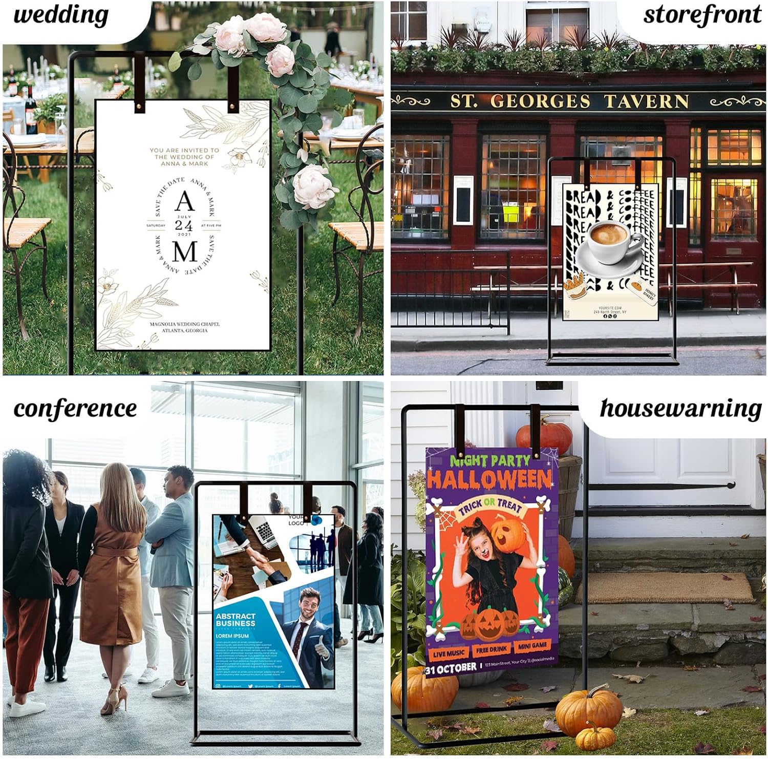 - METAL MATERIAL:Our poster stand is made of durable and high-quality thick metal. easy to assemble and durable. wedding welcome sign, seating chart display, or front door welcome sign. sturdy construction ensures long-lasting use both indoors and outdoors.