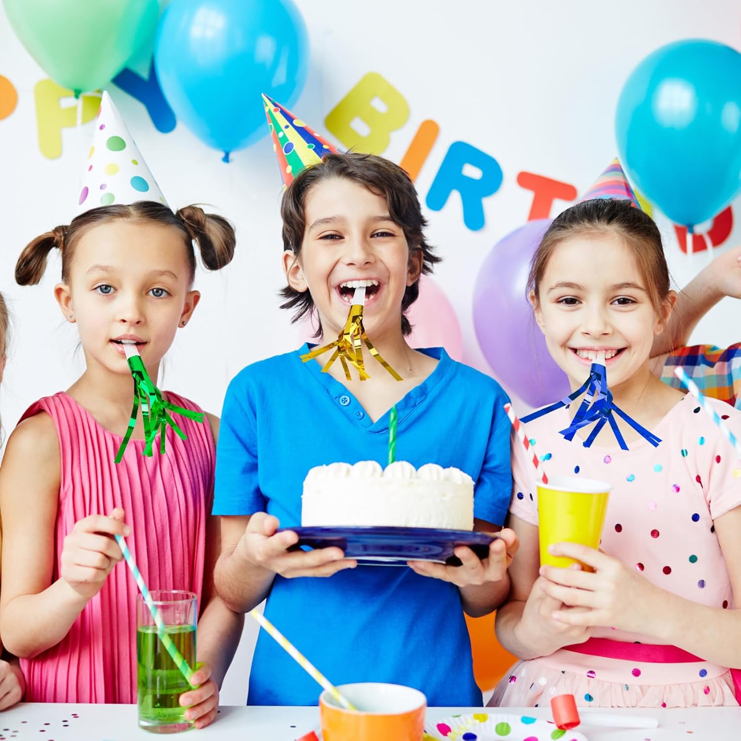 - Packaged Included: You will get 24pcs glitter metallic fringed party blowers, each new years noise makers measuring approximately 6.3 inches in total length (including tassel), this lightweight design makes those noise makers easy to carry, ensuring that party blowers for kids will be enough quantities for your birthday parties or family gatherings celebrations.
