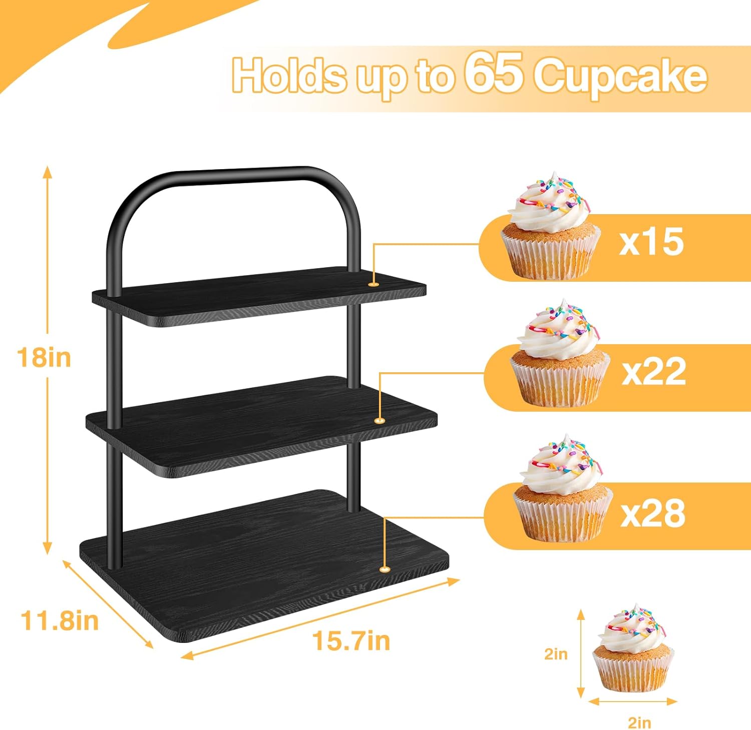 - Large Capacity Cupcake Stand – This 3-tier Halloween Cupcake Stand holds up to 50 small cupcakes with ease. Featuring sturdy square wooden boards in sizes up to 15.7” x 11.8”, it provides plenty of space to display spooky Halloween cupcakes, ghost cookies, or pumpkin muffins, creating a perfect dessert display centerpiece for parties.