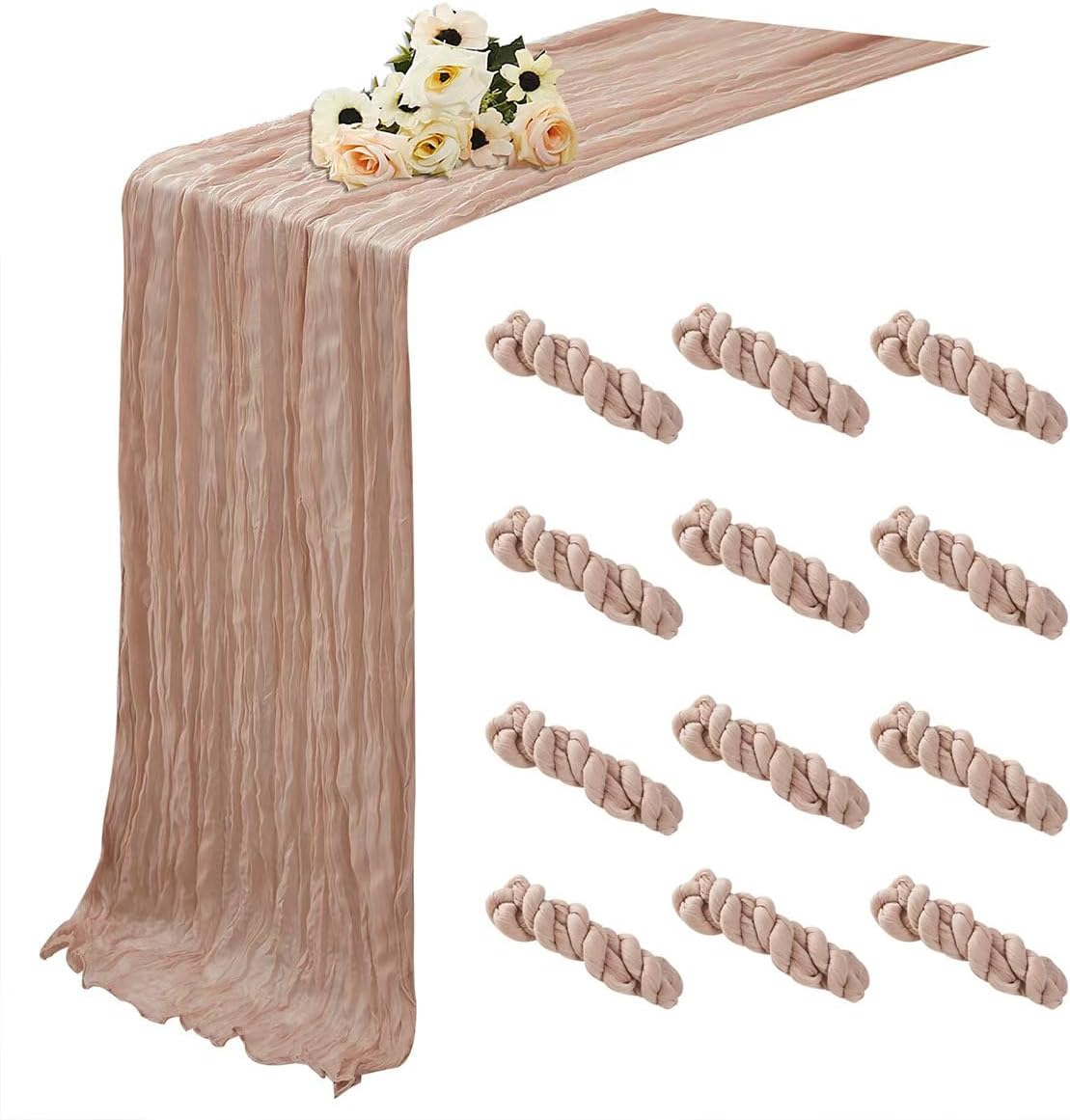 Nude 12 Pack Cheesecloth Table Runner 120 Inch 10 FT Boho Rustic Gauze for Wedding Baby Shower Party Farmhouse Summer Home Decor Washable