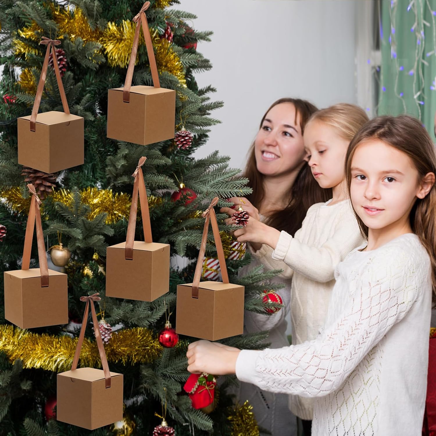 DOYIDE 20 Pack Small Gift Boxes, 6x6x6 Inch Brown Elegant Paper Boxes with Ribbons, Christmas Gift Box Crafting, Wedding Party Favor, Cupcake, Candy, Bridesmaids Proposal Box