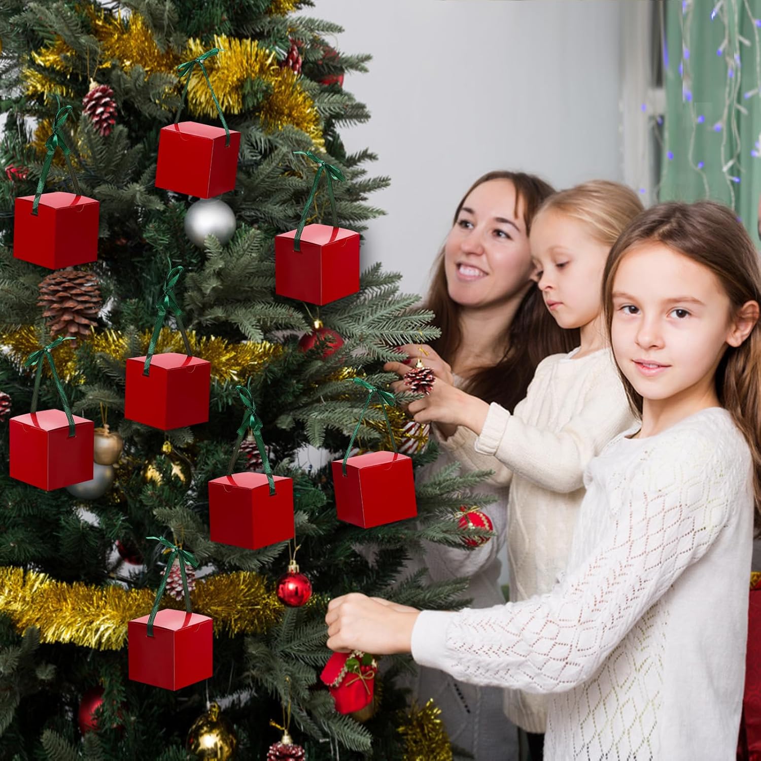 DOYIDE 60 Pcs Small Gift Boxes, 3x3x3 inches Kraft Paper Gift Box with Ribbons, Red Candy Boxes for Christmas Wedding Favors Baby Shower Bridal Shower Birthday Party