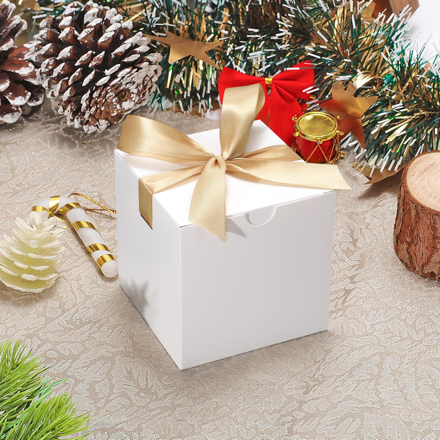 DOYIDE 20 Pack Small Gift Boxes, 6x6x6 Inch White Elegant Paper Boxes with Ribbons, Christmas Gift Box Crafting, Wedding Party Favor, Cupcake, Candy, Bridesmaids Proposal Box