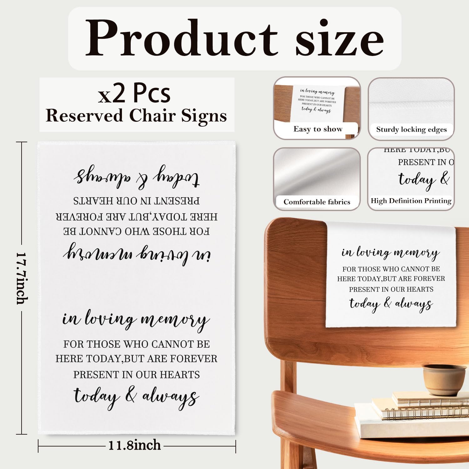 In Loving Memory Wedding Sign, Reserved Memorial Chair Signs Pew Cloths Seating Placeholder, Wedding Decorations for Reception Event Celebrations (2 Pcs, today & always)