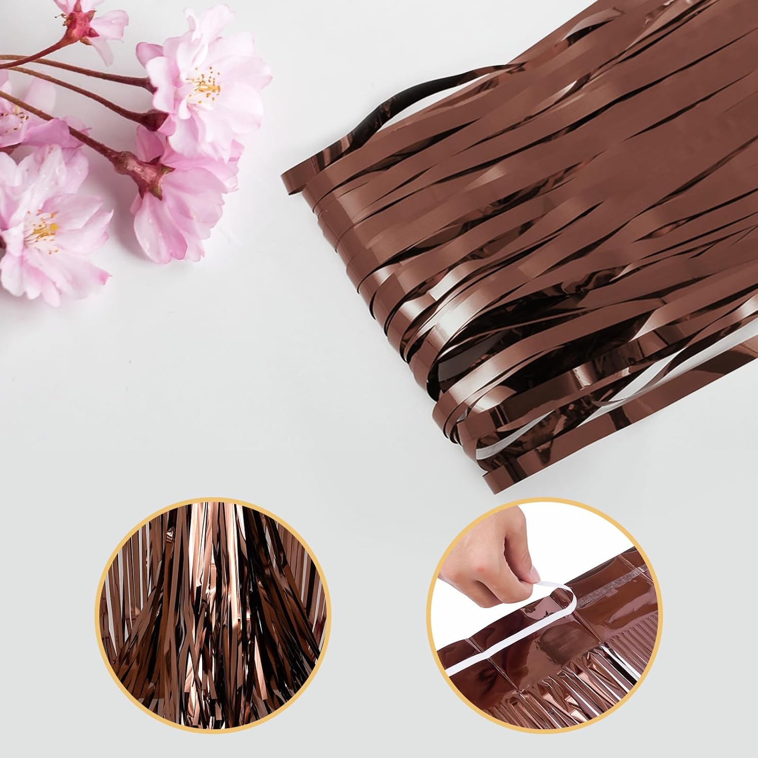 10 Pack Brown Backdrop Curtain 3.2ft x 8.2ft Metallic Tinsel Foil Fringe Curtains Photo Booth Background for Birthday Party Decoration Baby Shower Engagement Wedding Christmas Decoration (Brown)