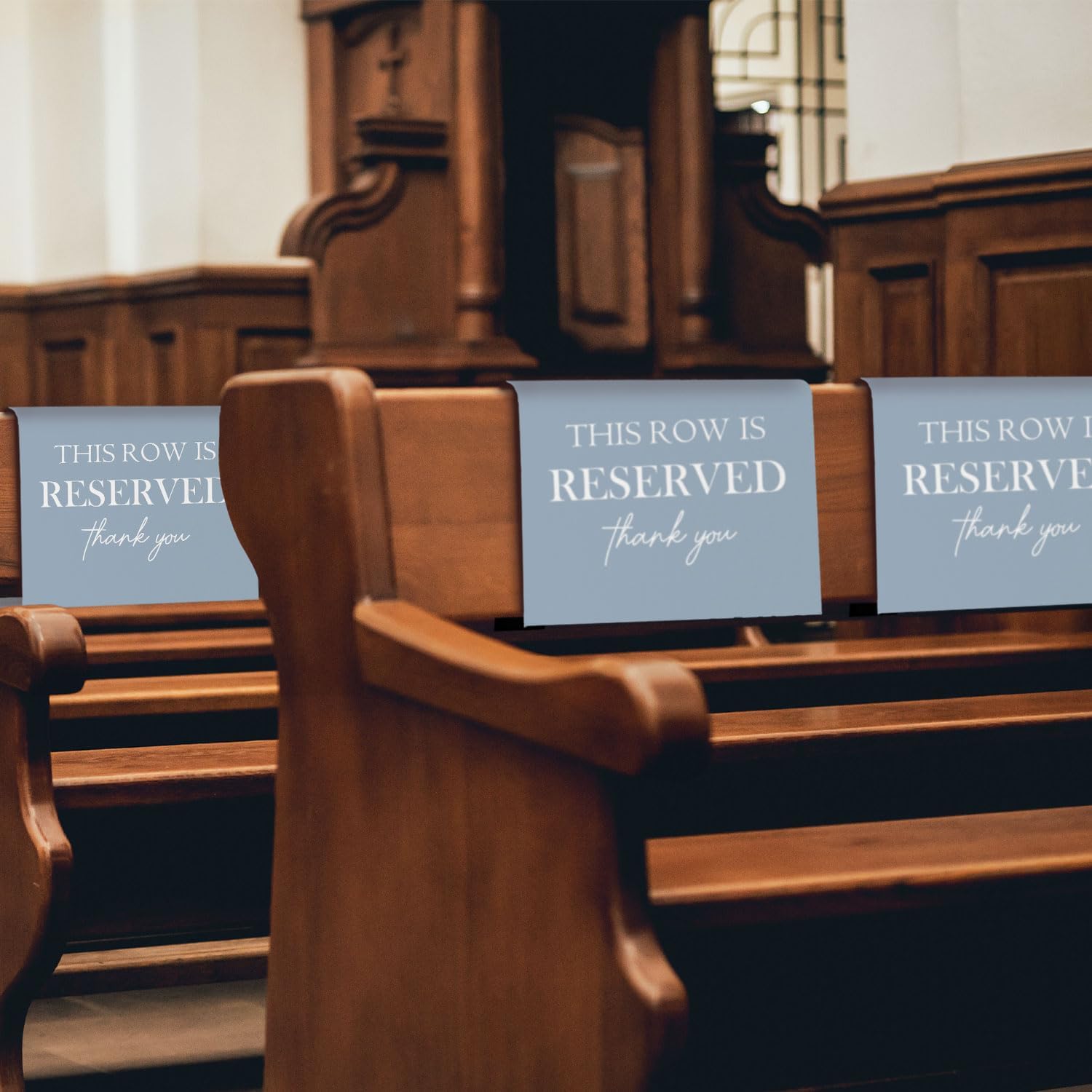 Reserved Seating Chair Signs, This Row Is Reserved Pew Cloths Seating Placeholder for Church Pews, Dusty Blue Wedding Decorations for Reception Parties Event (Dusty Blue, 4 PCS)